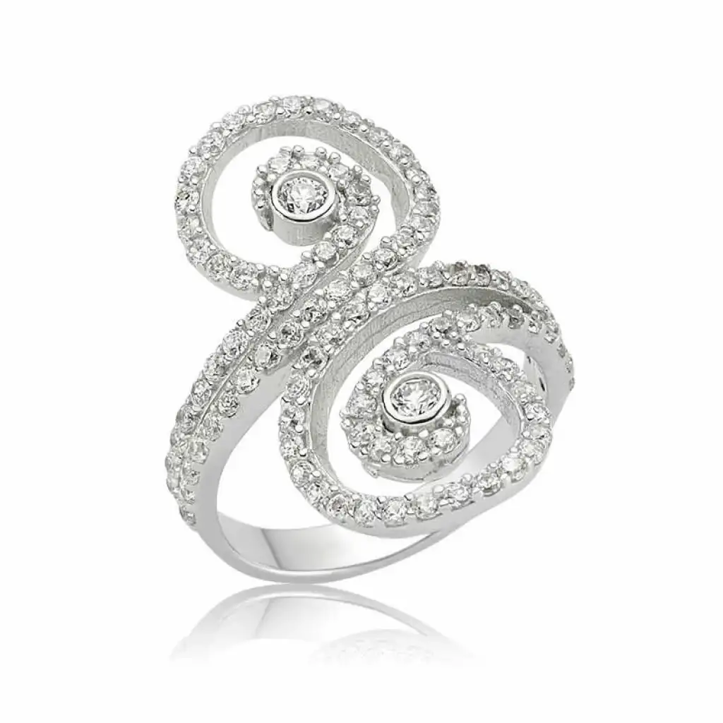 925 ayar gümüşten imal edilen modern desenli sonsuzluk bayan yüzük üzerinde bulunan beyaz taşlar zirkondur. Gümüş modern bayan yüzük üzerine rodyum kaplama yapılmıştır. Rodyum kaplama yapılan gümüş bayan yüzük modelleri parlaklığını uzun süre muhafaza eder, oksitlenmesi gecikir. Bayan yüzük modellerimizin tamamında olduğu gibi gümüş sonsuzluk bayan yüzük modeli de el emeği ile üretilmiştir. Gümüş ve değerli taşlar nedeniyle belirtilen ortalama ürün ağırlığında ± %10 sapma olabilmektedir.