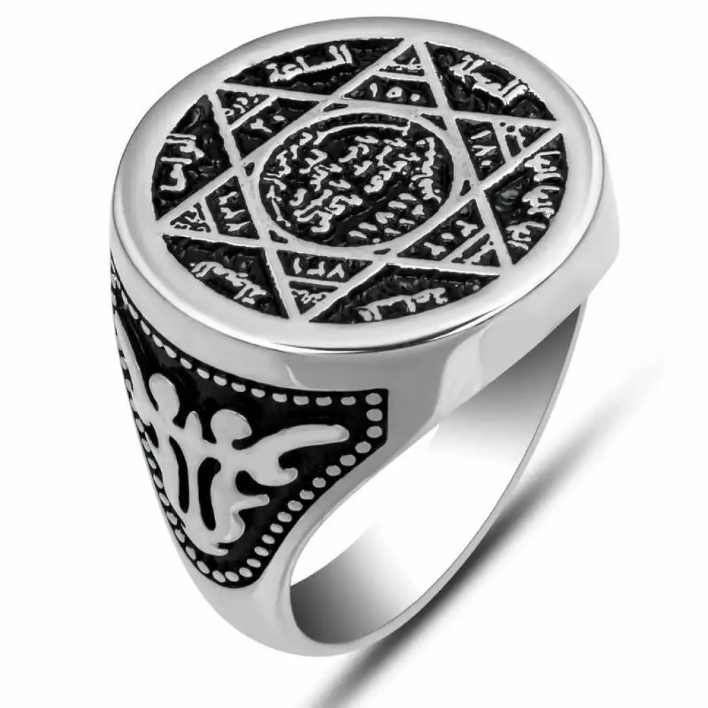 Bu mührün bulunduğu yüzük, Adem a.s.’ın kullandığı ve dünyaya gelirken cennette bıraktığı, daha sonra Cebrail a.s tarafından Cenab-Hakkın izniyle Davud a.s.’a getirilmiştir. Oğlu Süleyman a.s layık olduğundan ona verilmiştir. Öncelikle yüce Allah'ın ın celal ve cemal sıfatlarını sembolize eder. Bu mühür remizdir, rahmani bir semboldür. Siz de Gümüş Süleyman Mührü Yüzüğü sevdiklerinize armağan edebilirsiniz. Gümüş üzerine oksit kaplama yapılmıştır. Ürünlerimizin tamamı el emeği ile üretilmiştir. Gümüş ve değerli taşlar nedeniyle belirtilen ortalama ürün ağırlığında ± %10 sapma olabilmektedir.