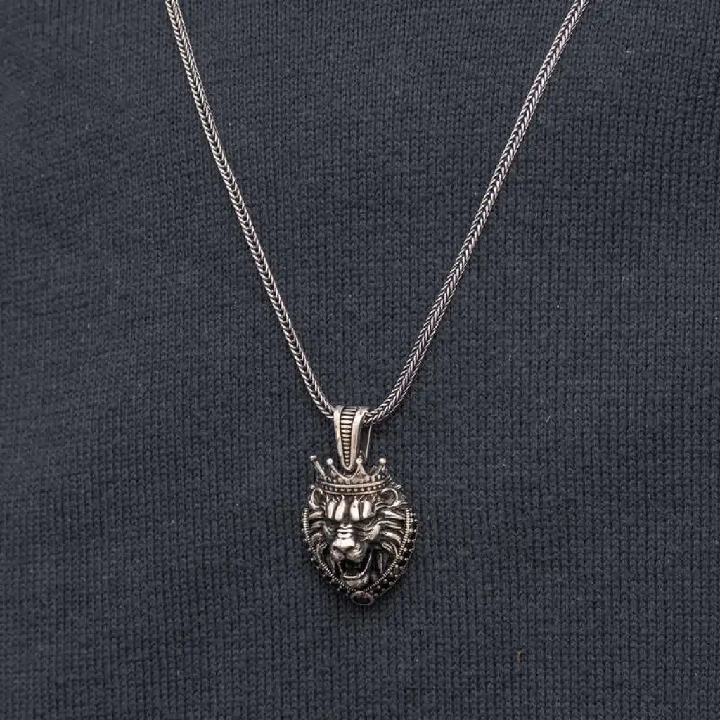 Gümüş Taçlı Aslan Figürlü Erkek Kolye
