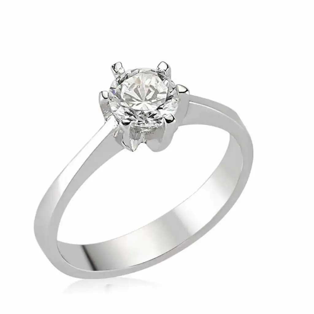 Klasik tek taş modellerinin güzel bir örneği olan bu model tüm bayan yüzük modelleri arasında dikkat çekici tasarımıyla ön plana çıkıyor. 925 ayar gümüşten imal edilmiş olup, yüzük üzerine rodyum kaplama yapılmıştır. Rodyum kaplama yapılan gümüş yüzük modelleri parlaklığını uzun süre muhafaza eder, oksitlenmesi gecikir. Yüzük üzerinde kullanılan beyaz taş zirkondur. Zirkon pırlanta benzeri bir taştır. Görüntü itibariyle pırlantaya benzer ama gerçek değildir. Genelde gümüş bayan tek taş yüzük modellerinde zirkon taş kullanılır. Bayan tek taş yüzük modellerinin tamamı el emeği ile üretilmiştir. Gümüş ve değerli taşlar nedeniyle belirtilen ortalama ürün ağırlığında ± %10 sapma olabilmektedir.
