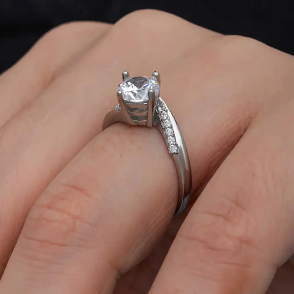 Bu özel tasarım tek taş yüzük 925 ayar gümüşten imal edilmiştir. Gümüş üzerine rodyum kaplama yapılmıştır. Rodyum kaplama yapılan kadın gümüş yüzük modelleri parlaklığını uzun süre muhafaza eder, oksitlenmesi gecikir. Yüzük üzerinde bulunan taşlar zirkondur. Sevdiğinize doğum günü, sevgililer günü ve özel günlerde verebileceğiniz mükemmel bir hediye seçeneğidir. Gümüş kadın yüzük modellerimizin tamamında olduğu gibi bu tek taş kadın yüzük de tamamen el emeği ile üretilmiştir. Gümüş ve değerli taşlar nedeniyle belirtilen ortalama ürün ağırlığında ± %10 sapma olabilmektedir.