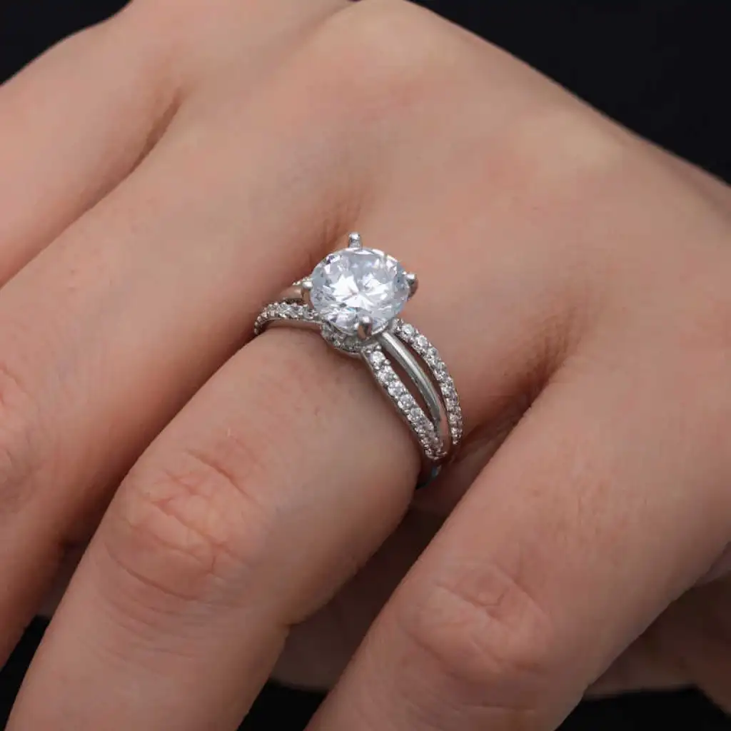 Bu özel tasarım tek taş yüzük 925 ayar gümüşten imal edilmiştir. Gümüş üzerine rodyum kaplama yapılmıştır. Rodyum kaplama yapılan kadın gümüş yüzük modelleri parlaklığını uzun süre muhafaza eder, oksitlenmesi gecikir. Yüzük üzerinde bulunan taşlar zirkondur. Sevdiğinize doğum günü, sevgililer günü ve özel günlerde verebileceğiniz mükemmel bir hediye seçeneğidir. Gümüş kadın yüzük modellerimizin tamamında olduğu gibi bu tek taş kadın yüzük de tamamen el emeği ile üretilmiştir. Gümüş ve değerli taşlar nedeniyle belirtilen ortalama ürün ağırlığında ± %10 sapma olabilmektedir.