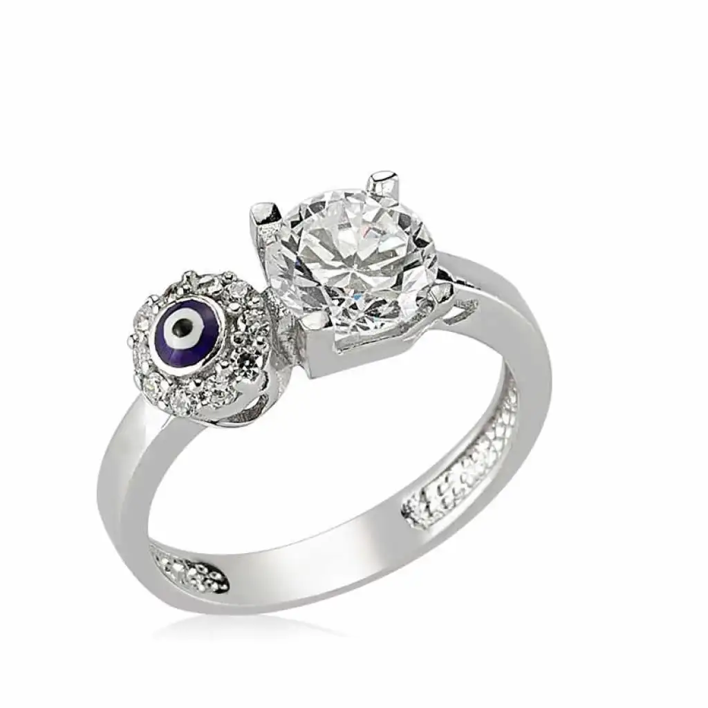 Gümüş Tek Taş Nazarlı Bayan Yüzük