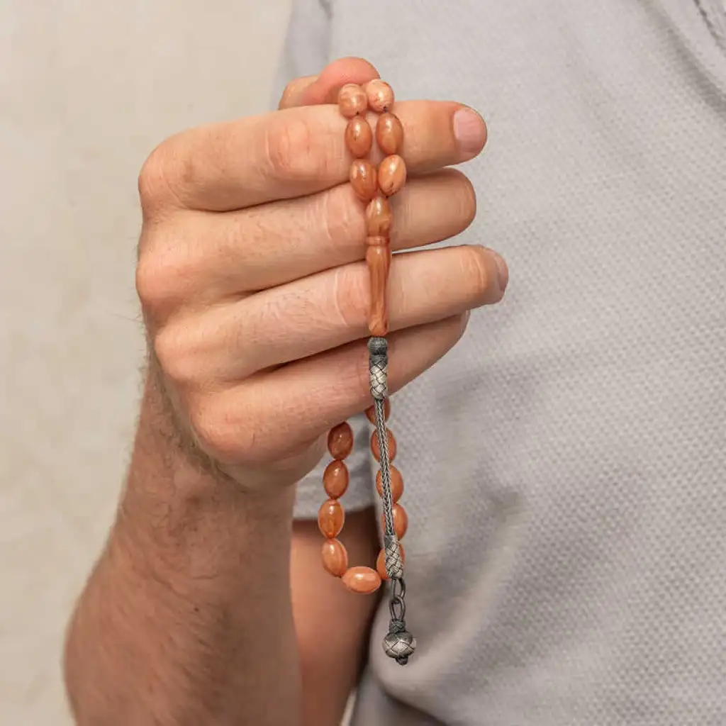 Gümüş Top Kazaz Püsküllü Sıkma Kehribar Tesbih