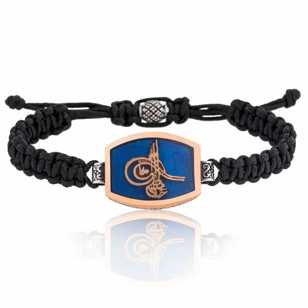Gümüş Tuğralı Makrome Erkek Bileklik