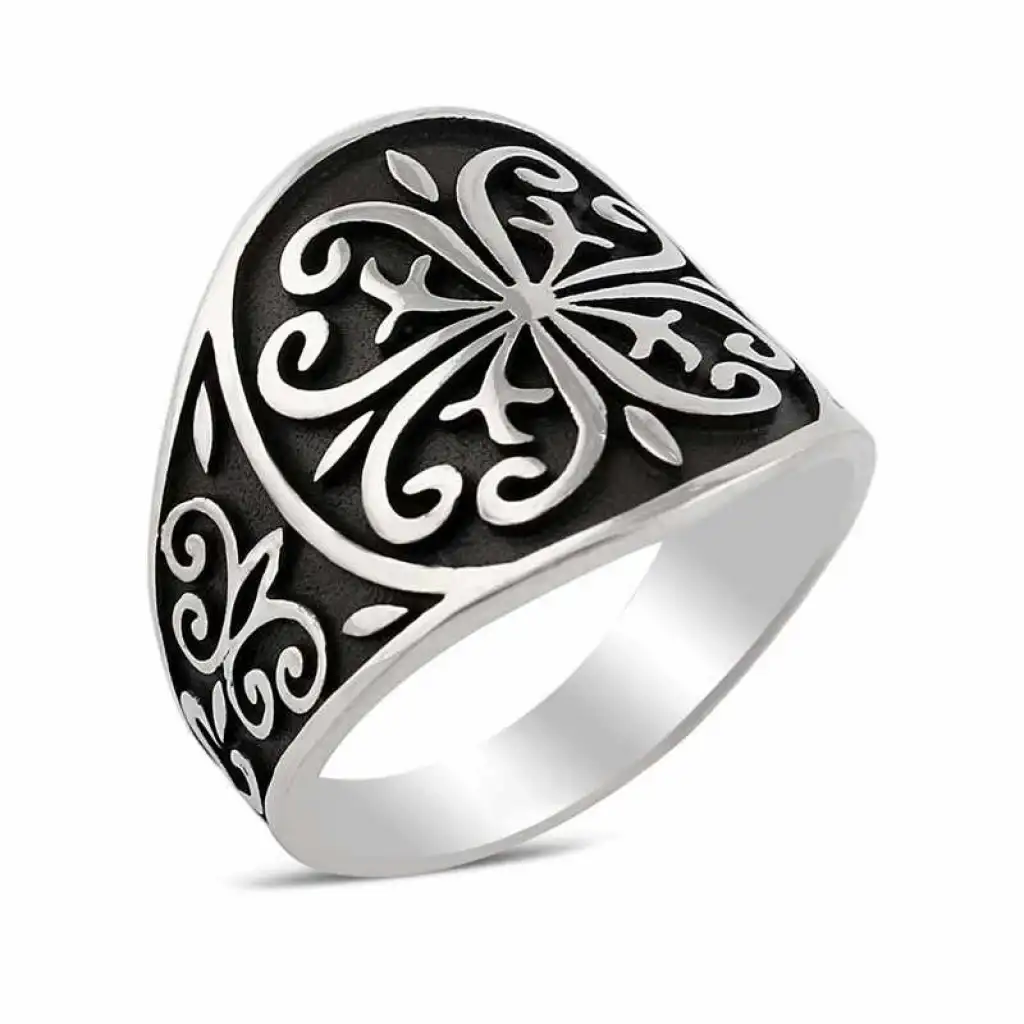 Bu şık tasarım yüzük sizler için tasarlandı. Bu mükemmel yüzüğü; kendinize ya da sevdiklerinize doğum gününde, babalar gününde ve özel günlerde hediye edebilirsiniz. Herkesin severek kullanacağı bu erkek yüzük 925 ayar gümüşten imal edilmiştir. Gümüş üzerine oksit kaplama yapılmıştır. Tüm gümüş erkek yüzüklerinde olduğu gibi gümüş türk motifi erkek yüzük de tamamı el emeği ile üretilmiştir. Gümüş ve değerli taşlar nedeniyle belirtilen ortalama ürün ağırlığında ± %10 sapma olabilmektedir.