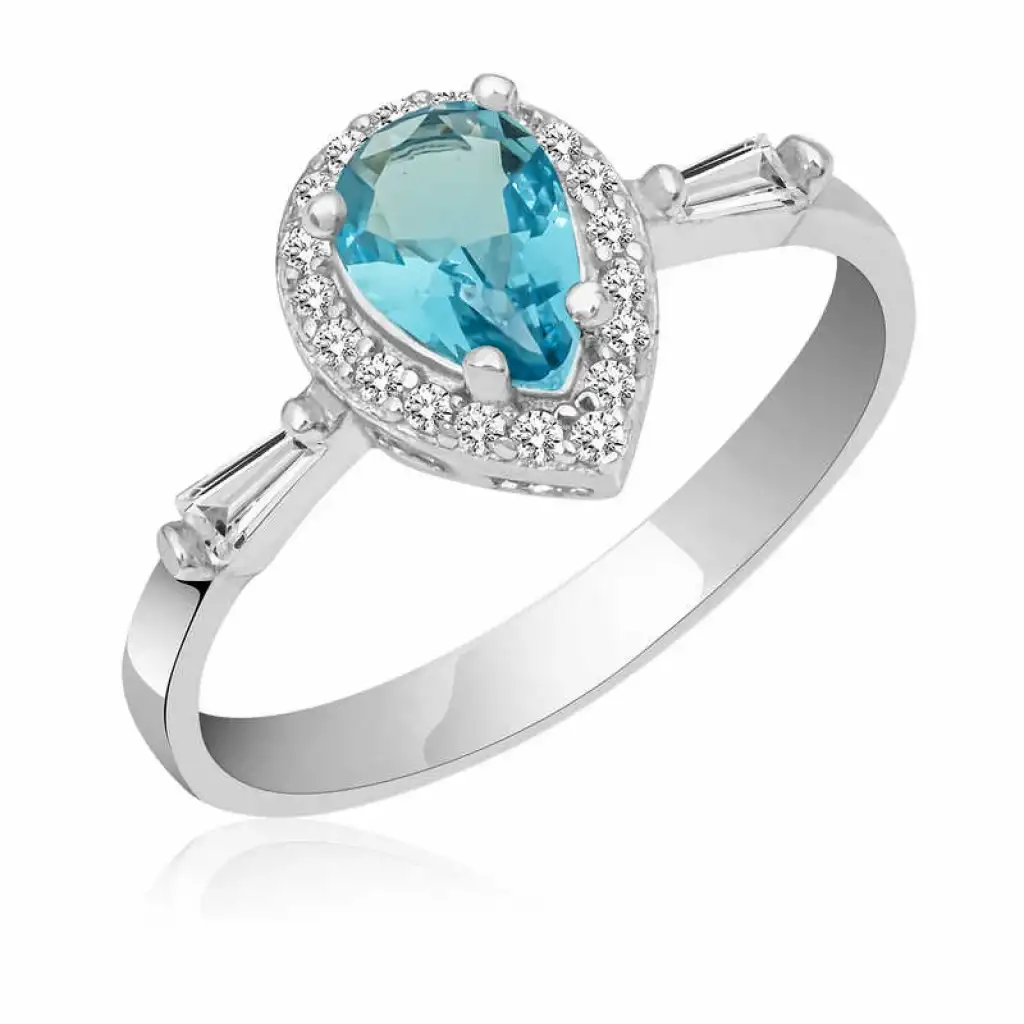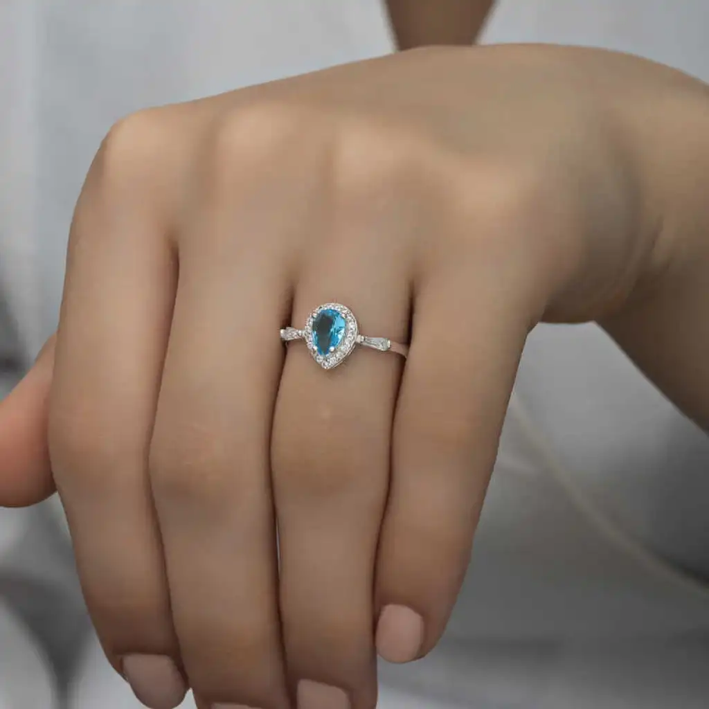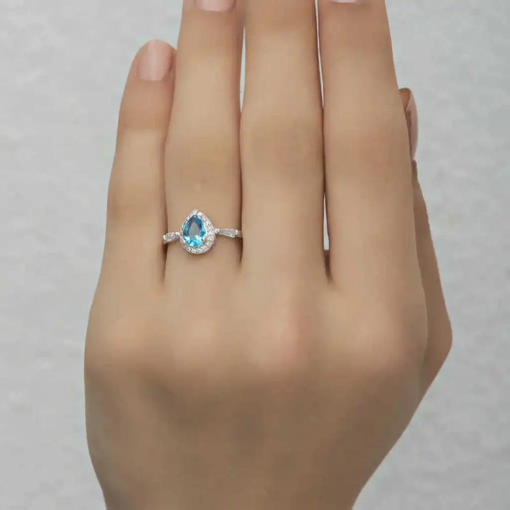 Gümüş Turkuaz Damla Taşlı Kadın Yüzük