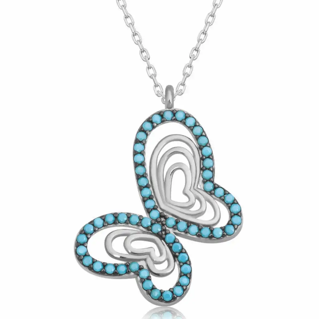 Gümüş Turkuaz Taşlı Kelebek Kadın Kolye