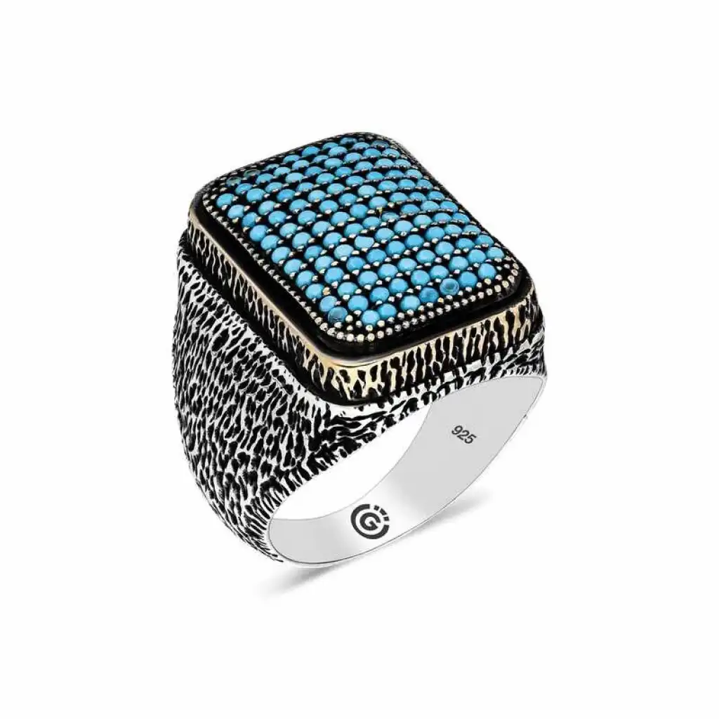 Gümüş Turkuaz Zirkon Taşlı Kare Erkek Yüzük