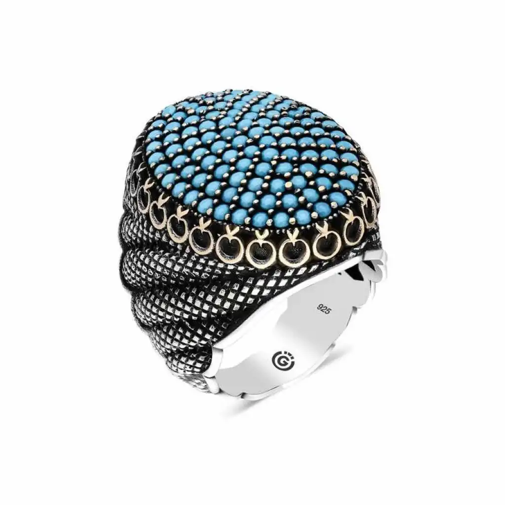 Gümüş Turkuaz Zirkon Taşlı Oval Erkek Yüzük