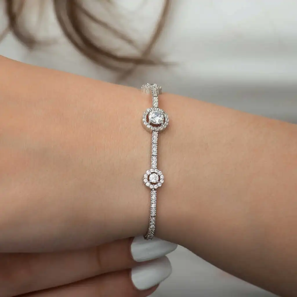 Gümüş Üç Taşlı Su Yolu Bayan Bileklik