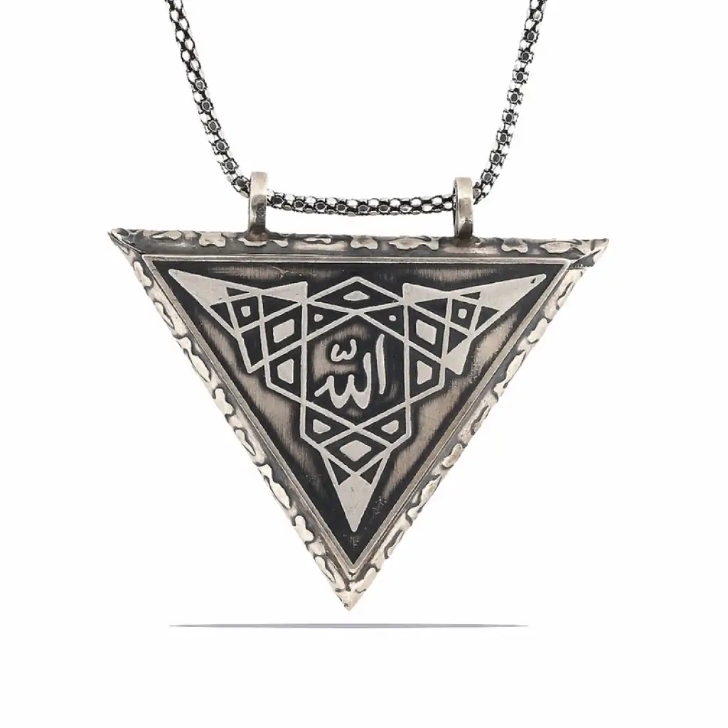Gümüş Üçgen İçi Açılabilen Allah Muskalık Kolye