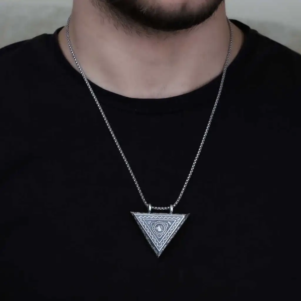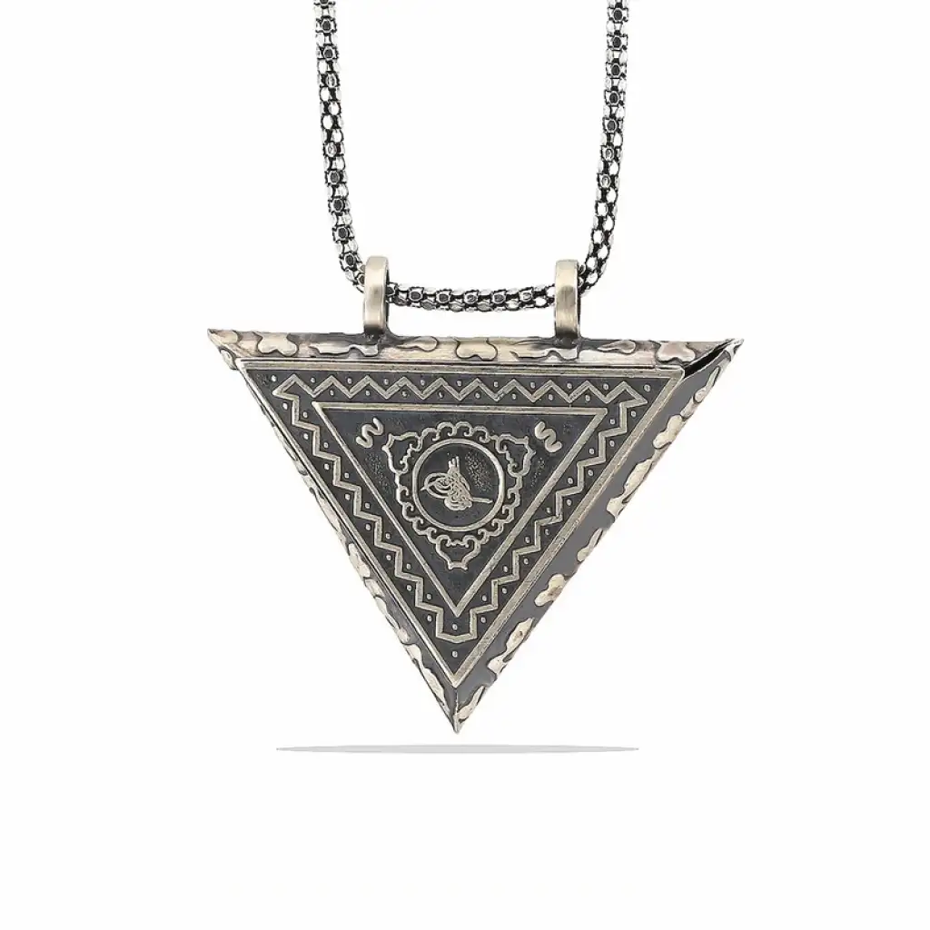 Gümüş Üçgen İçi Açılabilen Tuğra Muskalık Kolye