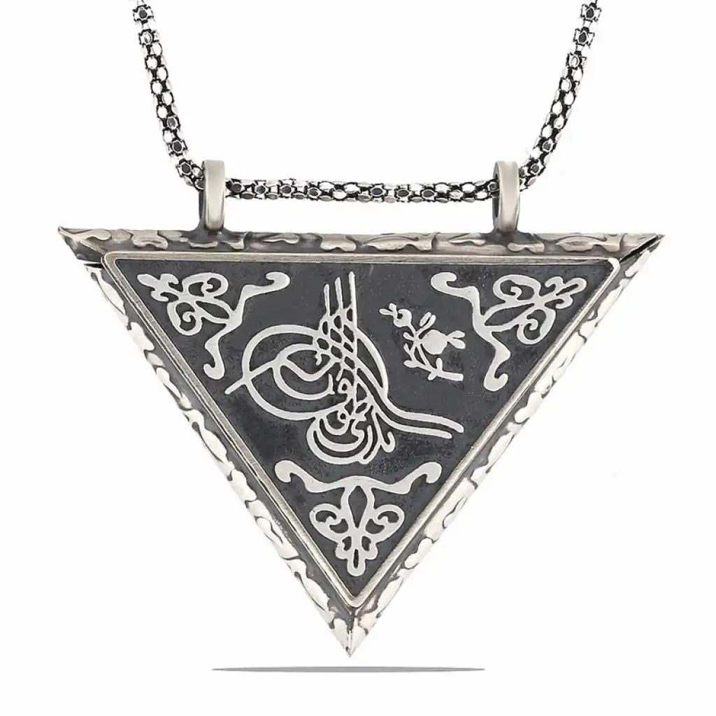 Gümüş Üçgen İçi Açılabilen Tuğra Muskalık Kolye