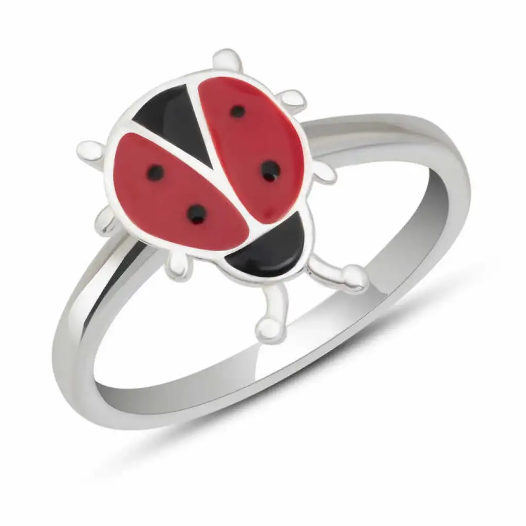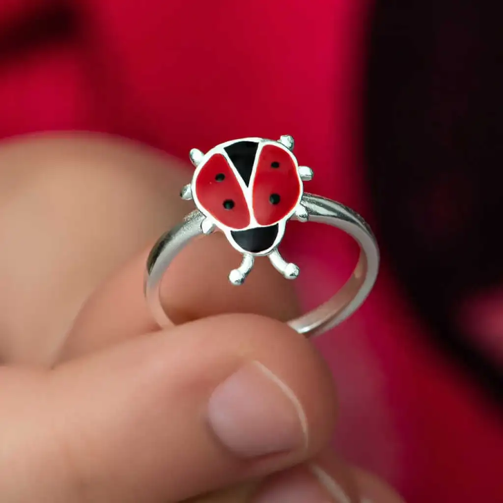 Gümüş Uğur Böceği Çocuk Kız Yüzük