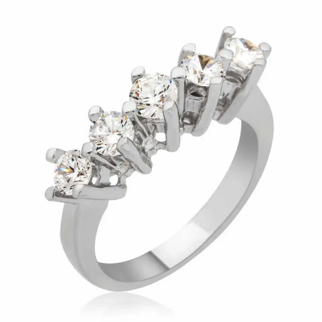 Gümüş Uzun Tırnaklı 5 Taş Bayan Yüzük