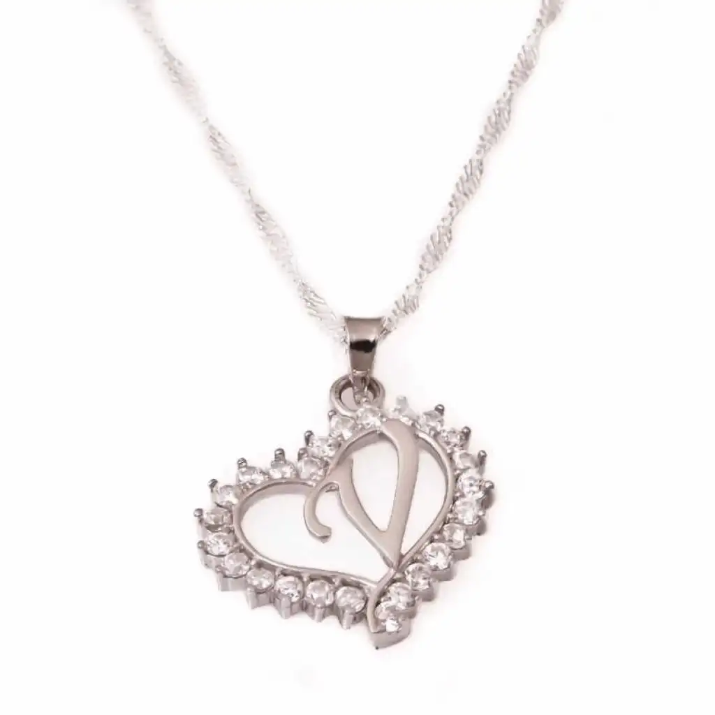 Kalp deseniyle aşkı ifade eden gümüş kalpli bayan kolye modeli ile sevginiz, sevdiğiniz kadının teninde hayat bulsun. Genç sevgililerin ve kendini genç hissedenlerin özel günlerde seçebileceği bu kalpli bayan kolye modeli ile sevdiğinizin boynunu aşkla süsleyin. Sizin olduğu kadar sevdiklerinizin de keyifle takacağı kalpli bayan kolye modeli sevdiğinize en güzel hediyelerden biri olacaktır. V harfli kalpli bayan kolye modeli 925 ayar gümüşten imal edilmiştir. Gümüş üzerine rodyum kaplama yapılmıştır. Rodyum kaplama yapılan gümüş bayan kalpli kolye modelleri parlaklığını uzun süre muhafaza eder ve oksitlenmesi gecikir. Kolye üzerinde bulunan beyaz taşlar zirkondur. Gümüş olan zincir boyu ortalama 45 cm'dir. Tüm bayan kolye modellerinde olduğu gibi gümüş v harfli kalpli bayan kolye modeli de el emeği ile üretilmiştir. Gümüş ve değerli taşlar nedeniyle belirtilen ortalama ürün ağırlığında ± %10 sapma olabilmektedir.