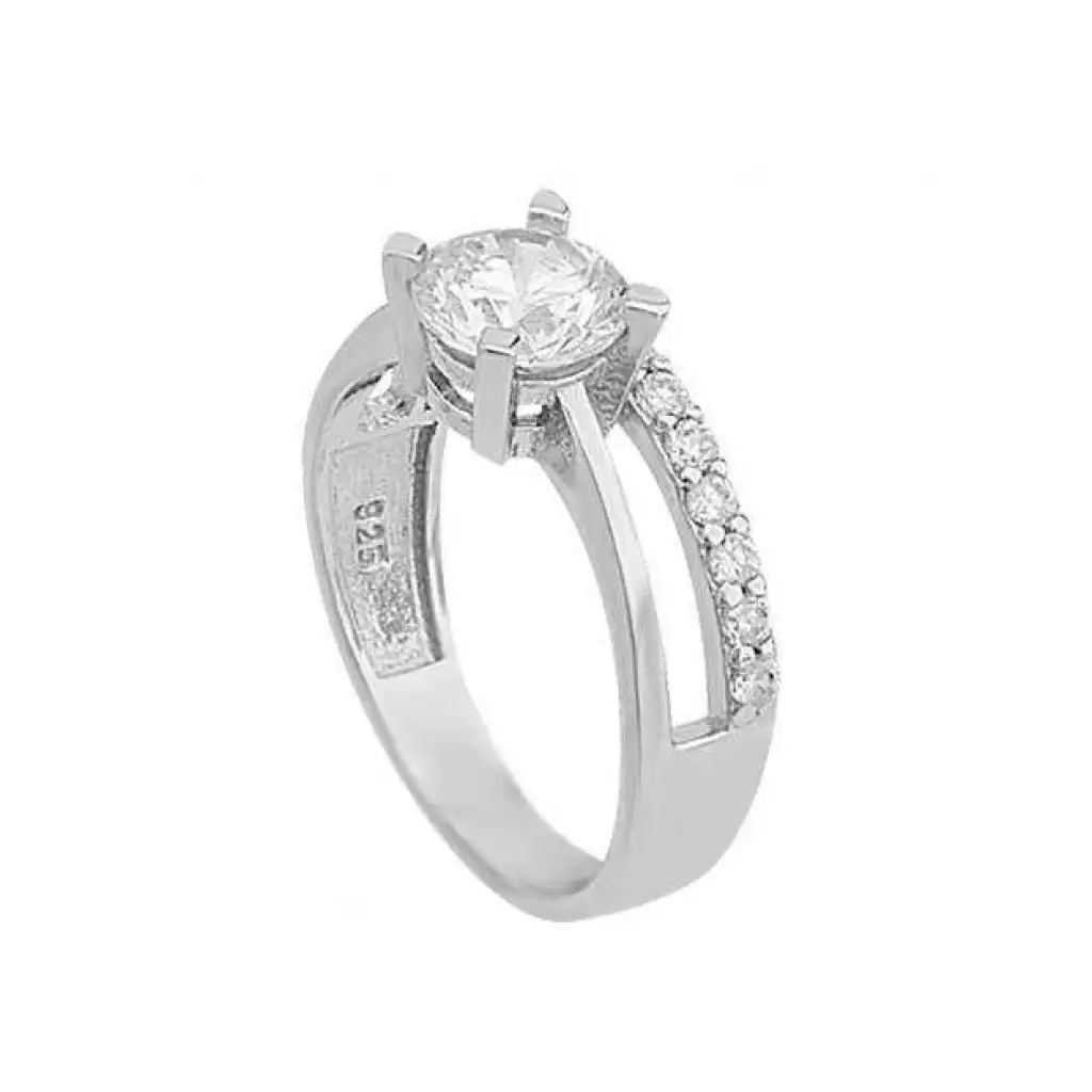 Gümüş Yarım Tur Tek Taş Bayan Yüzük