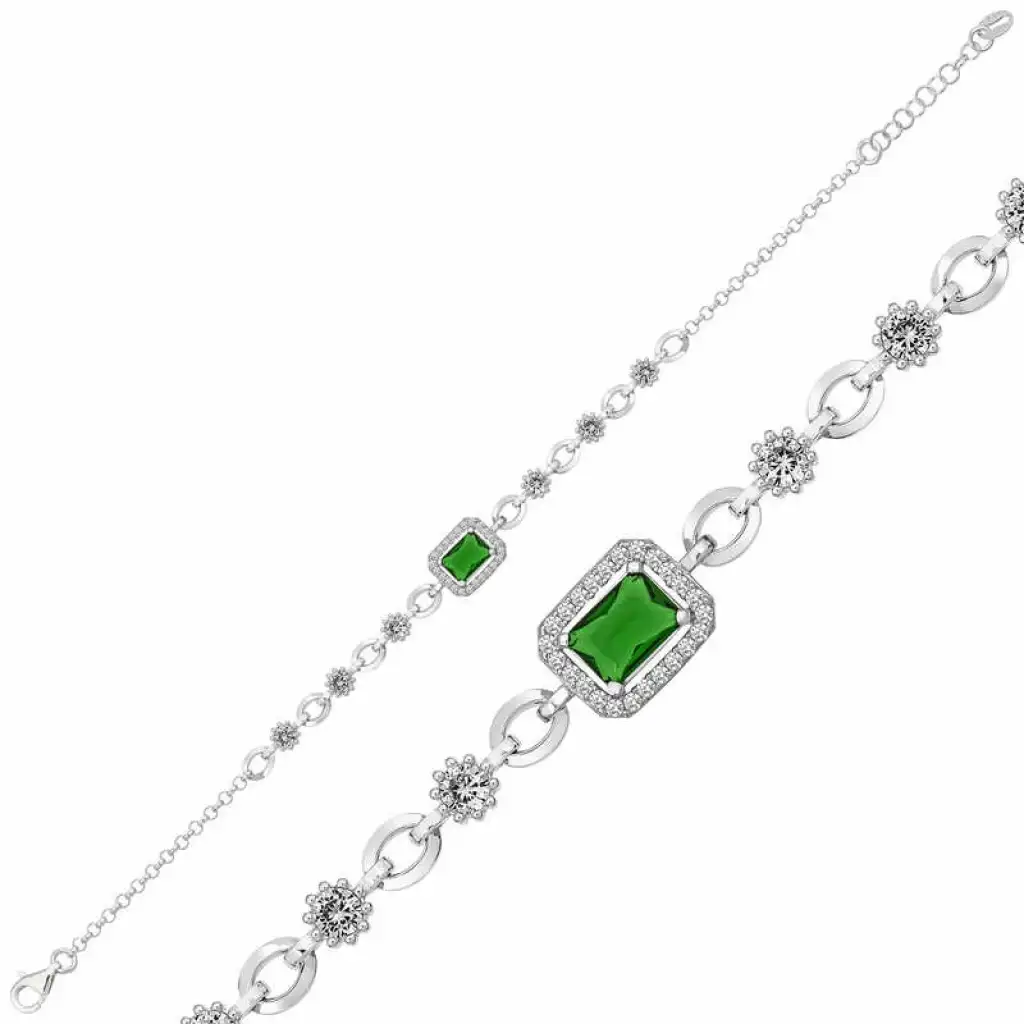 Gümüş Yeşil Baget Taşlı Bayan Bileklik