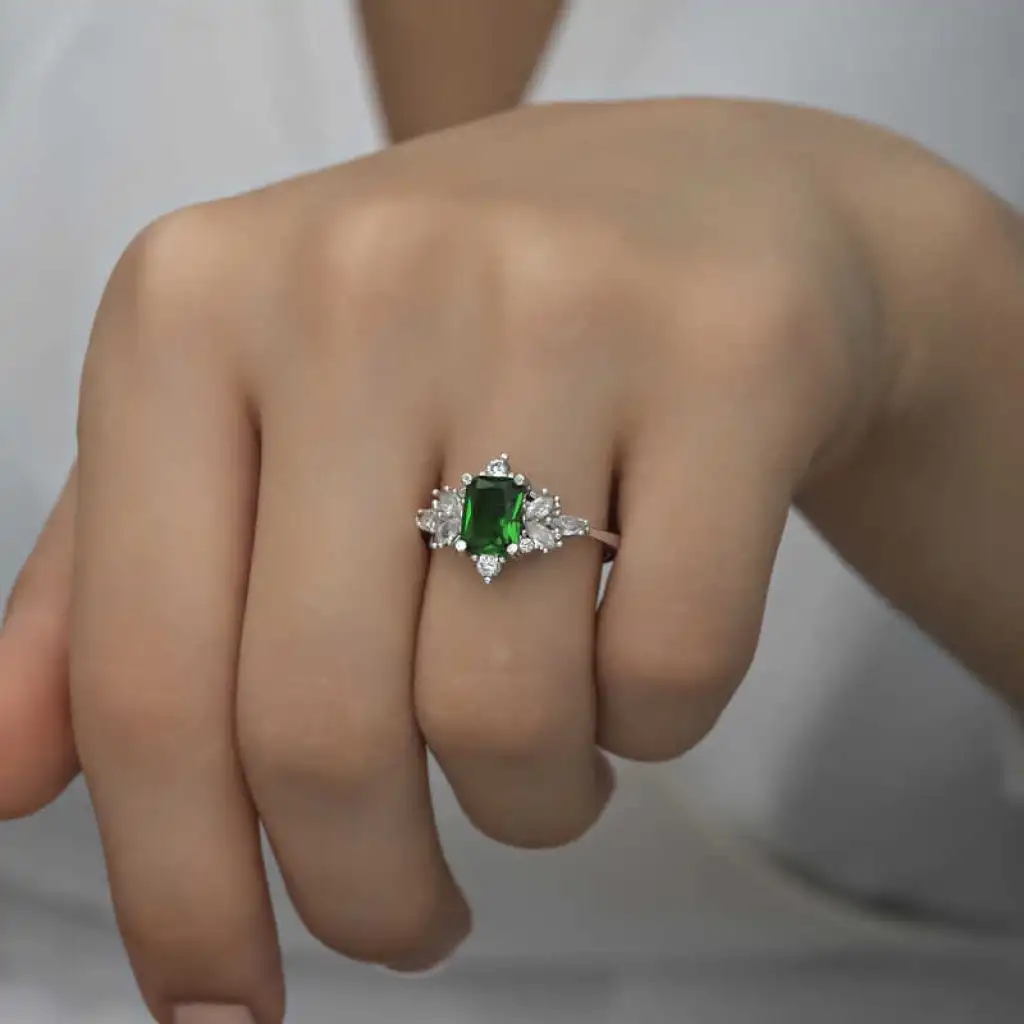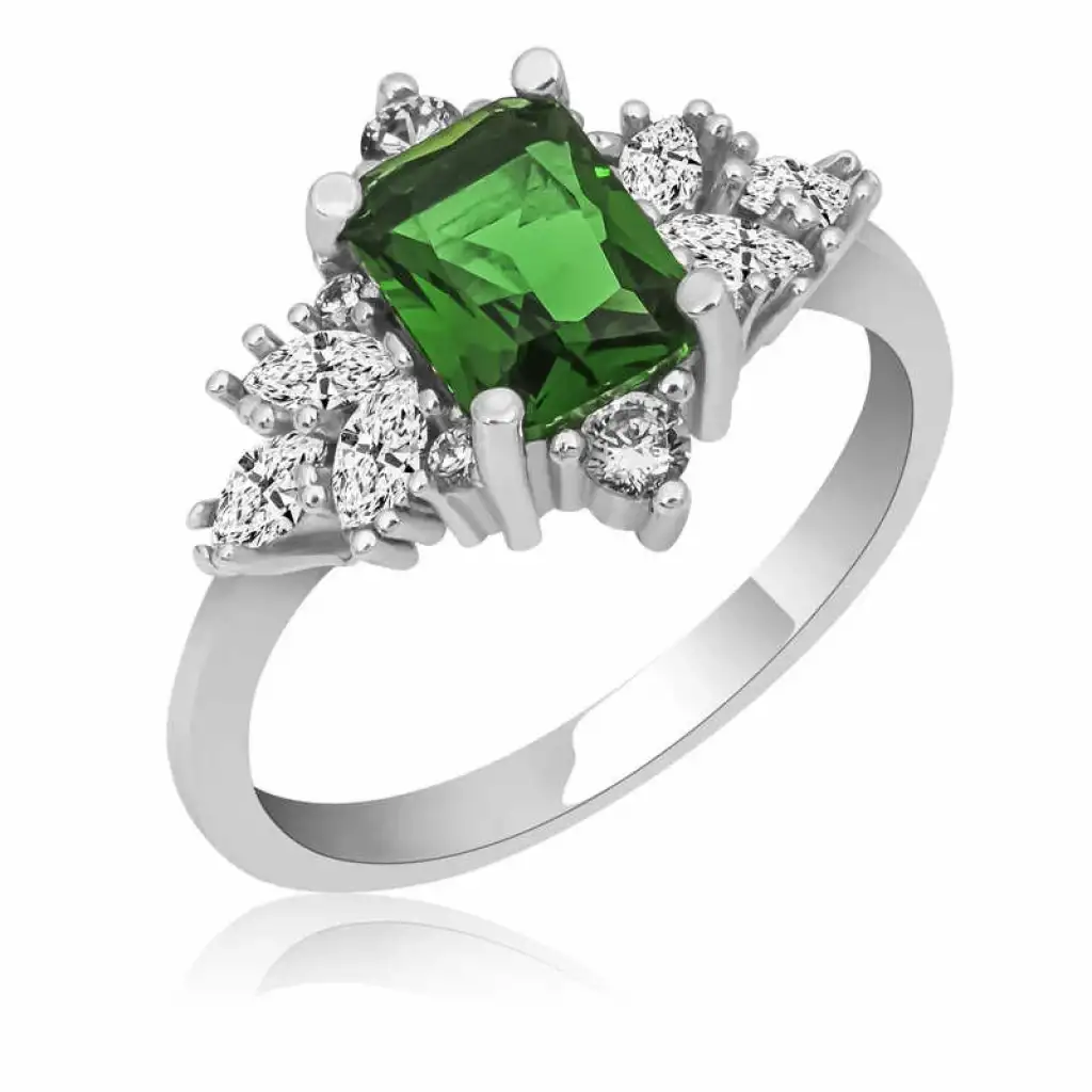 Gümüş Yeşil Baget Taşlı Kadın Yüzük