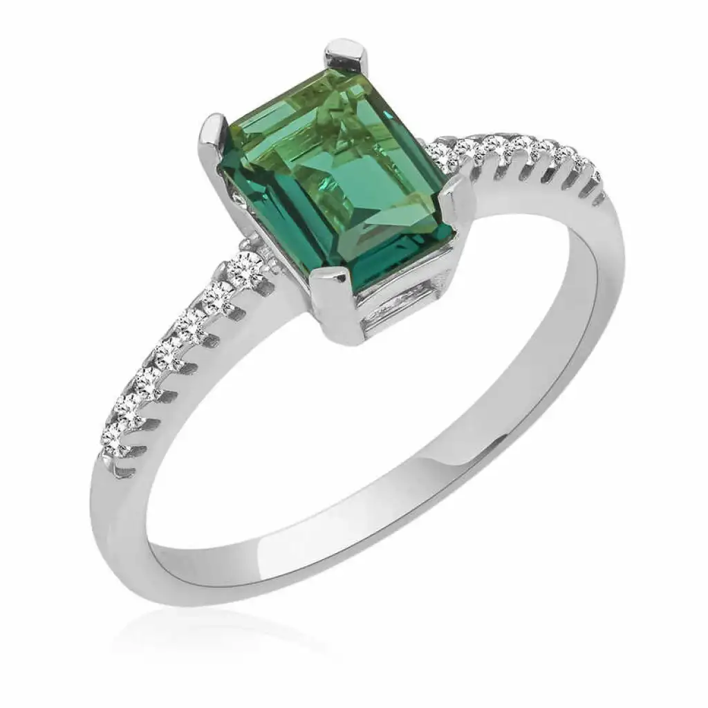 Gümüş Yeşil Baget Taşlı Kadın Yüzük