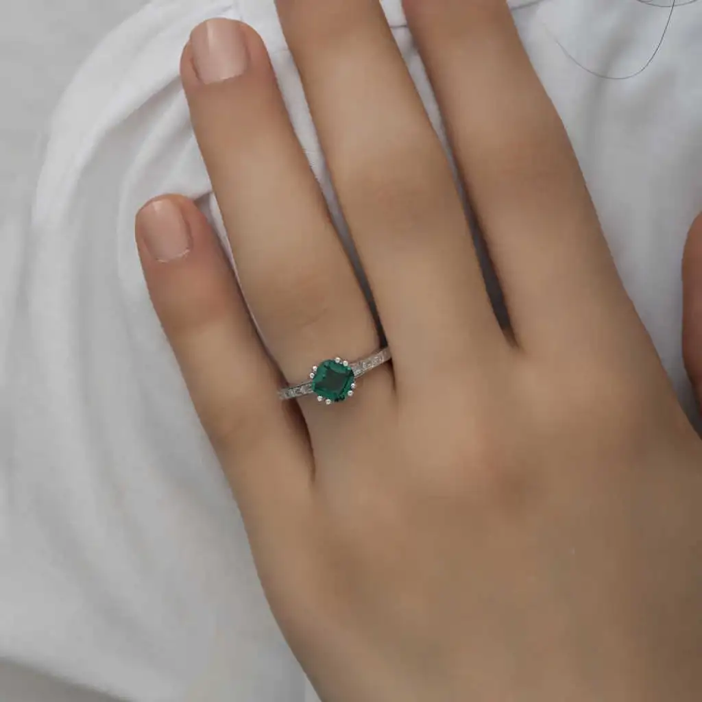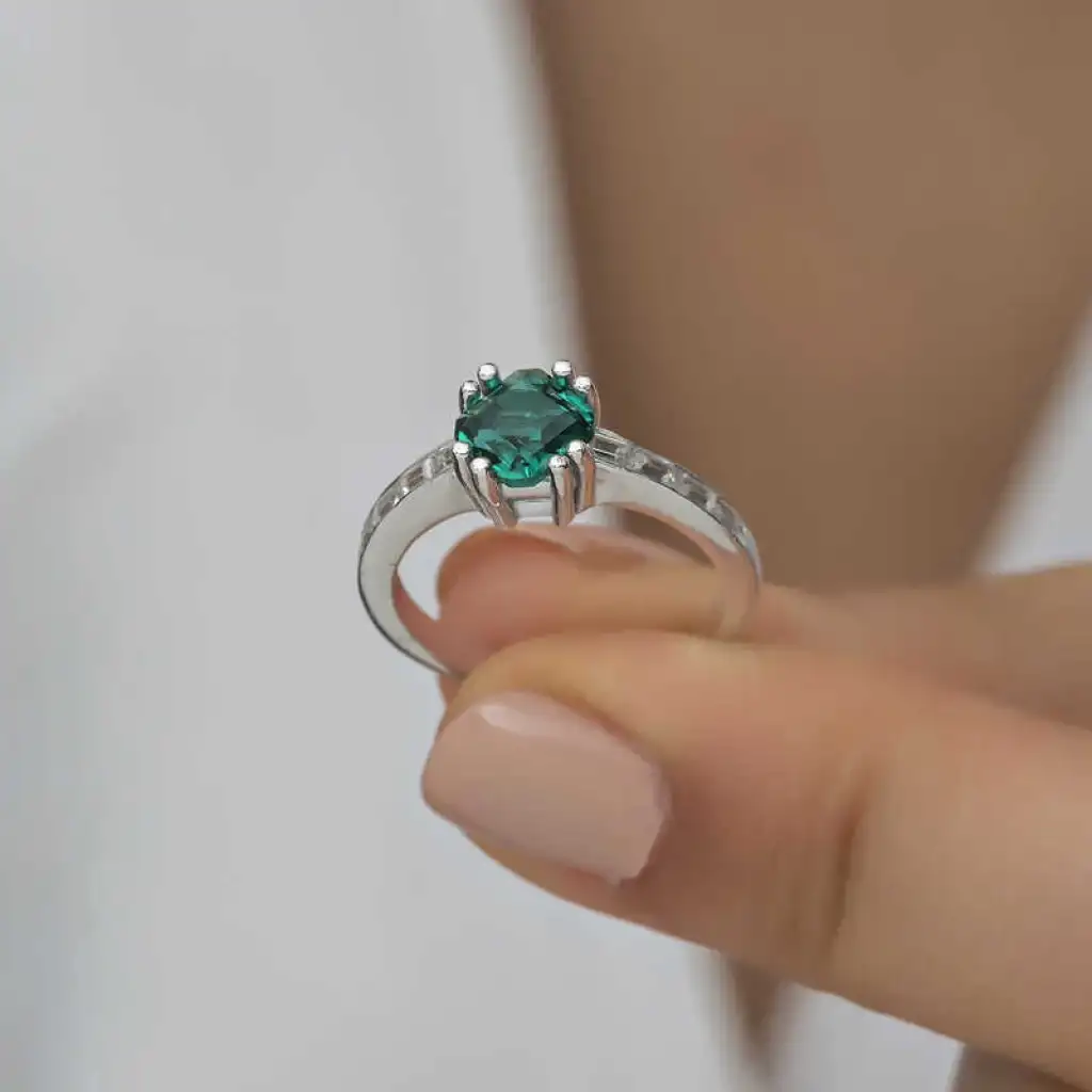 Gümüş Yeşil Baget Tek Taş Kadın Yüzük