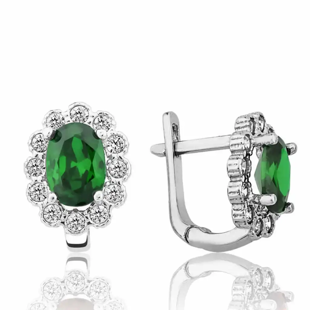 Gümüş Yeşil Çiçek Desenli J Kadın Küpe