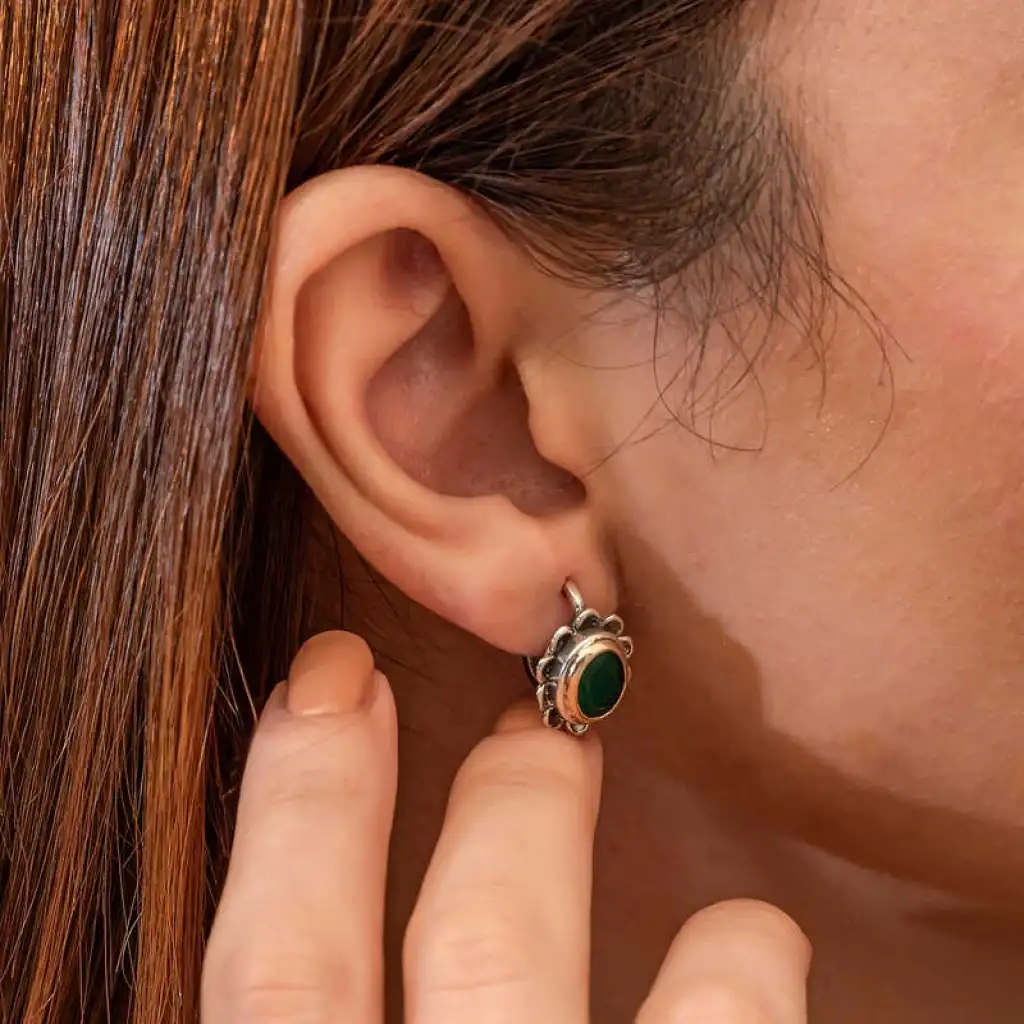 Yeşil taşlı çiçek desenli otantik küpe geleneksel ve modern tarzları bir araya getirerek stilinize ikonik bir dokunuş katıyor.Hem bohem hem de klasik stillerle mükemmel bir uyum sağlar.Doğum günü hediyesi, sevgililer günü hediyesi veya annelere hediye olarak özel günlerde tercih edilebilecek mükemmel bir seçenektir.Gümüş yeşil otantik küpe 925 ayar gümüşten imal edilmiştir. Gümüş üzerine rodyum kaplama yapılmıştır. Rodyum kaplama yapılan gümüş otantik kadın küpe parlaklığını uzun süre muhafaza eder ve oksitlenmesi gecikir. Tüm kadın küpelerde olduğu gibi gümüş otantik kadın küpe de el emeği ile üretilmiştir. Gümüş ve değerli taşlar nedeniyle belirtilen ortalama ürün ağırlığında ± %10 sapma olabilmektedir.