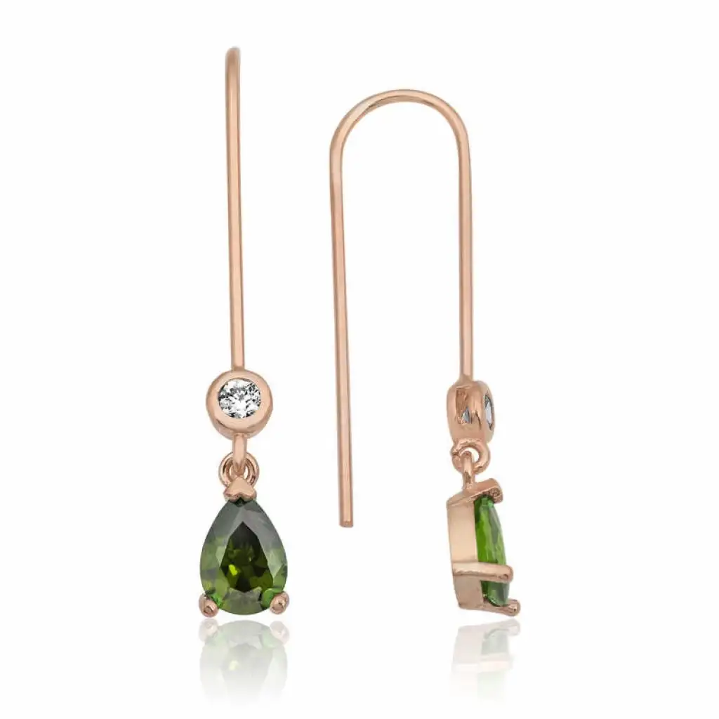 Yeşil pırıl pırıl taşları ile sonsuz ışığını yansıtan küpe modellerinden, damla taşlı küpe ve birbirinden ışıltılı seçenekler zarafetinize benzersiz bir ışık katacak. Modernden klasiğe geniş bir yelpazede birbirinden şık küpe modeli modelleri siz ve sevdikleriniz için hazırlandı. Yeşil damla küpe modeli 925 ayar gümüşten imal edilmiştir. Gümüş üzerine rose altın kaplama yapılmıştır. Rose altın kaplama yapılan gümüş küpe modelleri parlaklığını uzun süre muhafaza eder, gümüş rengini pembe renge dönüştürür ve oksitlenmeyi geciktirir. Üzerinde bulunan taşlar zirkondur. Gümüş küpe modellerimizin tamamında olduğu gibi gümüş yeşil damla küpe modeli de el emeği ile üretilmiştir. Gümüş ve değerli taşlar nedeniyle belirtilen ortalama ürün ağırlığında ± %10 sapma olabilmektedir.