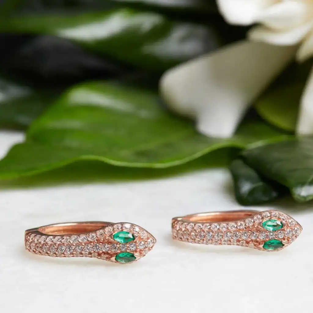 Gümüş Yeşil Gözlü Yılan Halka Küpe
