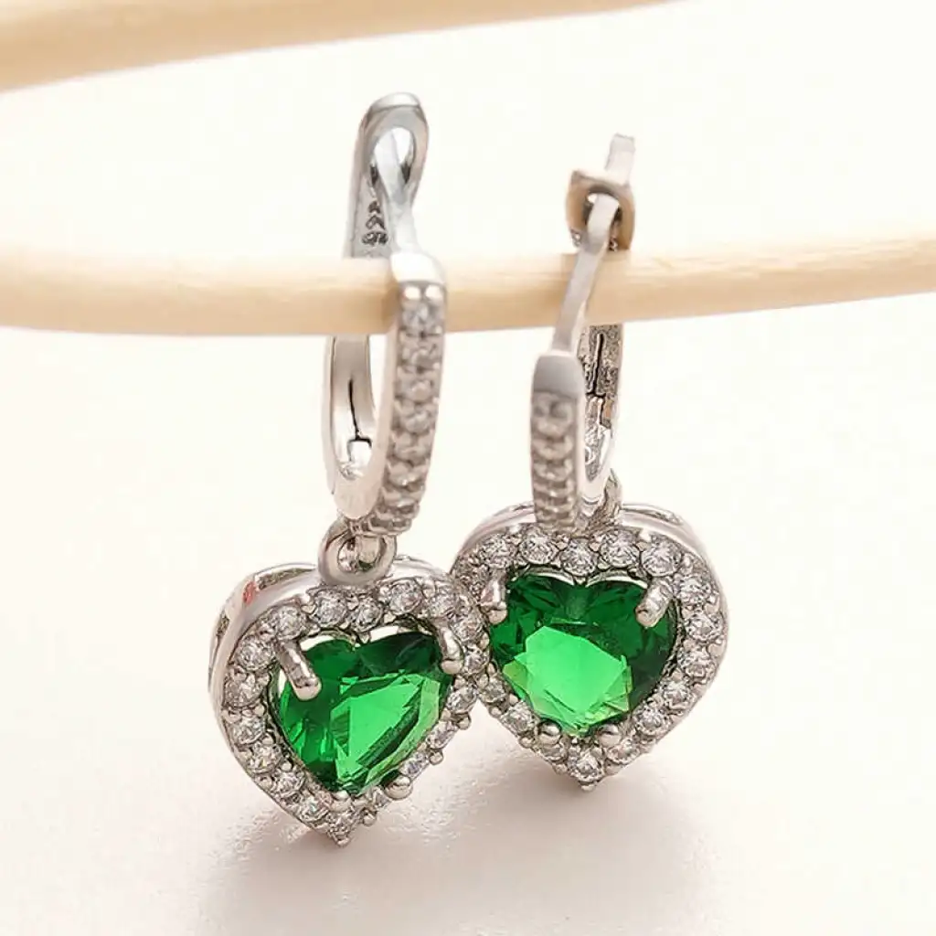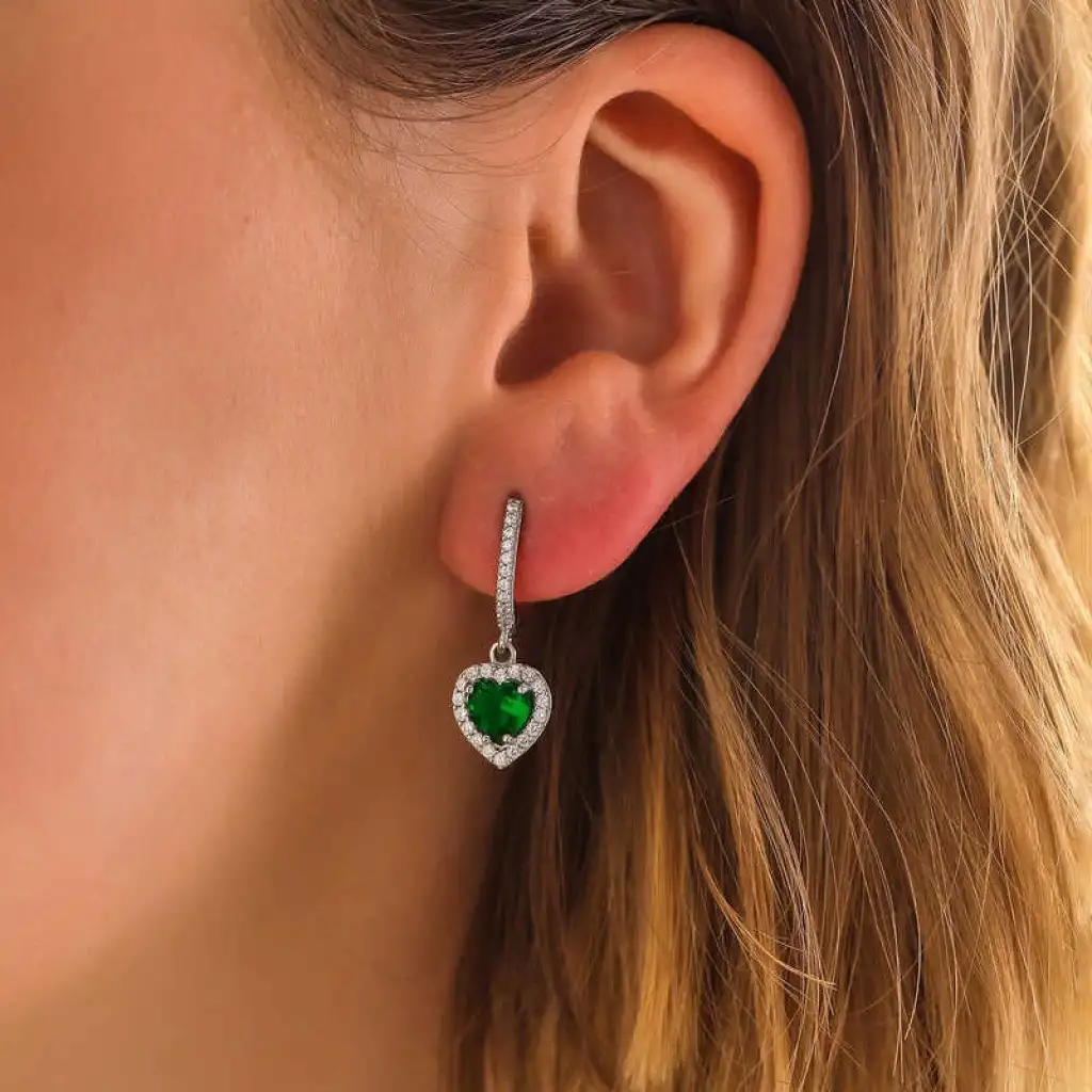 Gümüş Yeşil Taşlı Kalpli Kadın Küpe