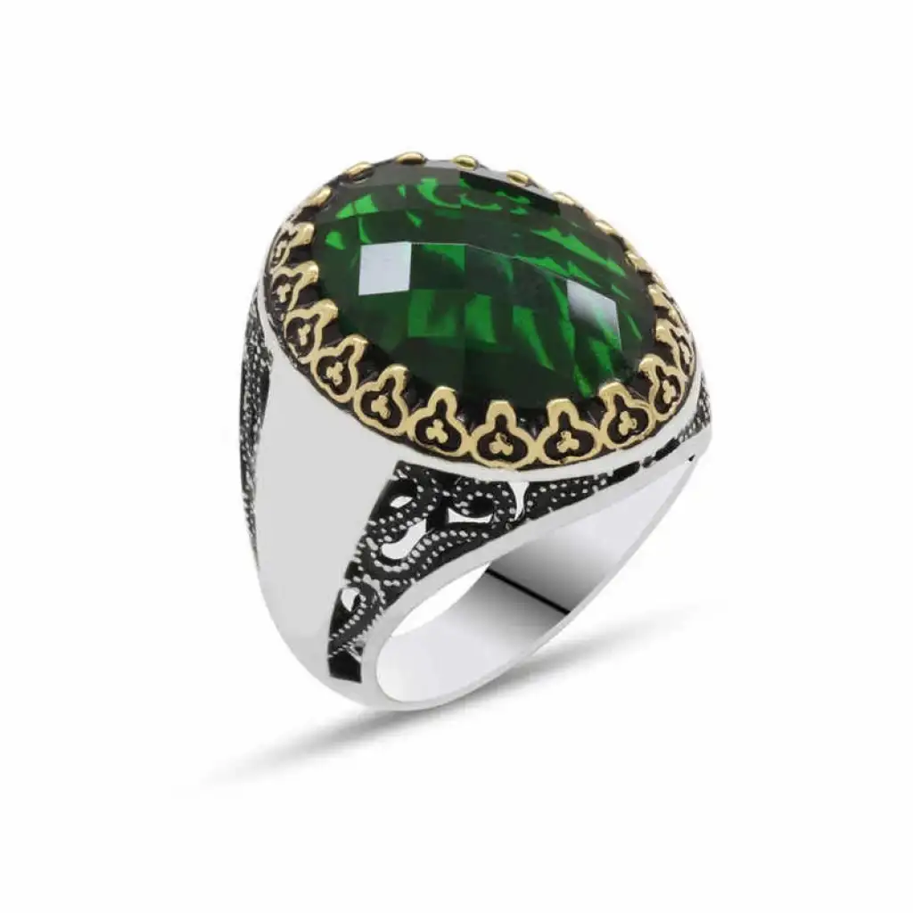 Gümüş Yeşil Zirkon Taşlı Erkek Yüzük