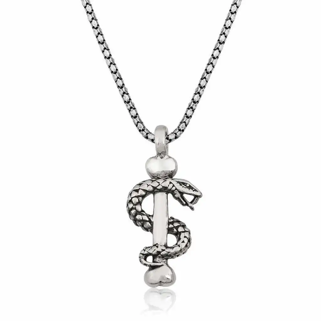 Yılanlar bilgelik ve gücü sembolize eder. Bir çok kültürde özellikle Hristiyanlıkta kutsal olarak kabul gören yılar hayatı ve hayatın gücünü temsil etmektedir. Sizde bu kolye ile gücü ve bilgeliği boynunuzda taşımaya ne dersiniz. Yılan erkek kolye 925 ayar gümüşten imal edilmiştir. Gümüş üzerine oksit kaplama yapılmıştır. Oksit kaplama yapılan gümüş kolye modelleri parlaklığını uzun süre muhafaza eder ve kararması gecikir. Gümüş zincirin uzunluğu 55 cm'dir. Tüm erkek kolye modellerinde olduğu gibi gümüş yılan erkek kolye de el emeği ile üretilmiştir. Gümüş ve değerli taşlar nedeniyle belirtilen ürün ürün ağırlığında ± %10 sapma olabilmektedir.