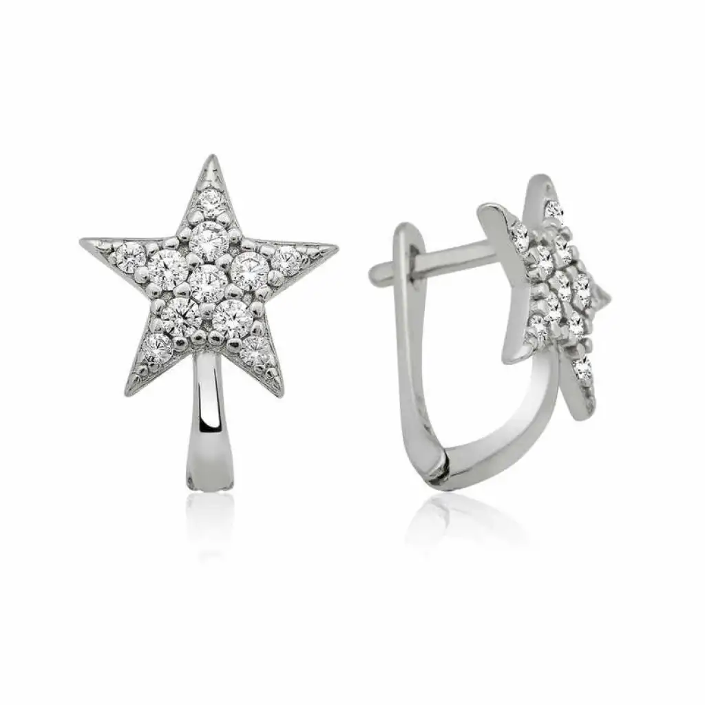 Gecenin parlak ışıltısını anımsatan yıldız; parıltının, ışığın, aydınlığın ve umudun sembolüdür. Bu şık küpe; 925 ayar gümüşten imal edilmiştir. Sizin olduğu kadar sevdiklerinizin de keyifle takacağı gümüş yıldız bayan küpe; doğum günü hediyesi, sevgililer günü hediyesi veya annelere hediye olarak özel günlerde tercih edilebilecek mükemmel bir seçenektir. Gümüş üzerine rodyum kaplama yapılmıştır. Rodyum kaplama yapılan bayan ürünler parlaklığını uzun süre muhafaza eder ve oksitlenmesi gecikir. Üzerinde bulunan taşlar zirkon'dur. Tüm gümüş küpelerde olduğu gibi gümüş yıldızlı küpe modeli de el emeği ile üretilmiştir. Gümüş ve değerli taşlar nedeniyle belirtilen ürün ağırlığında ± %10 sapma olabilmektedir.