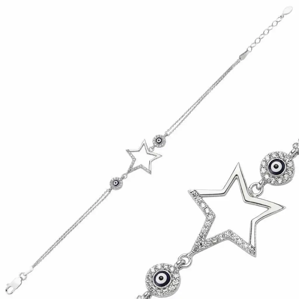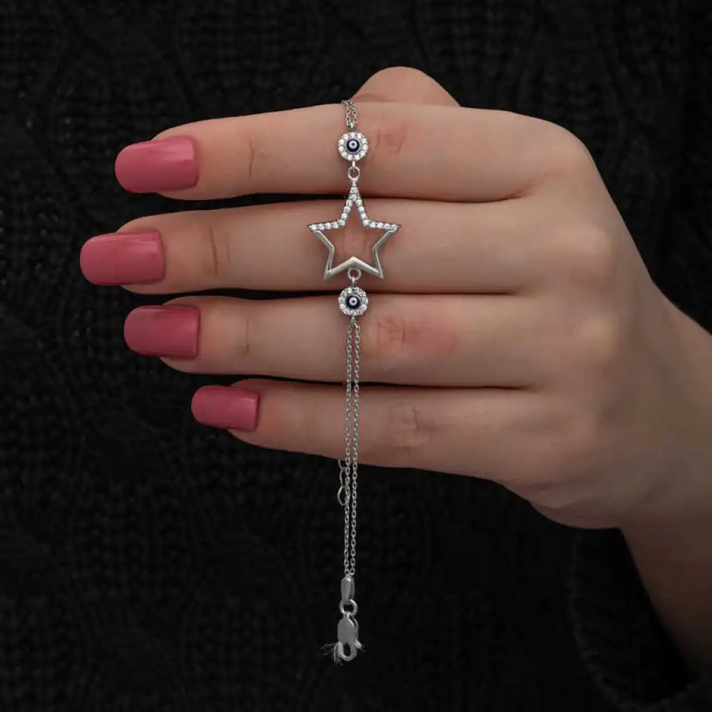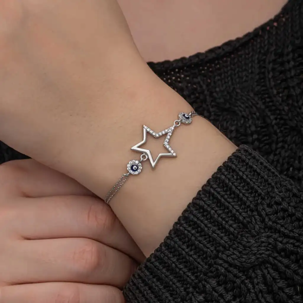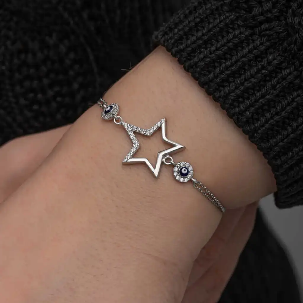 Gümüş Yıldız Nazarlı Kadın Bileklik