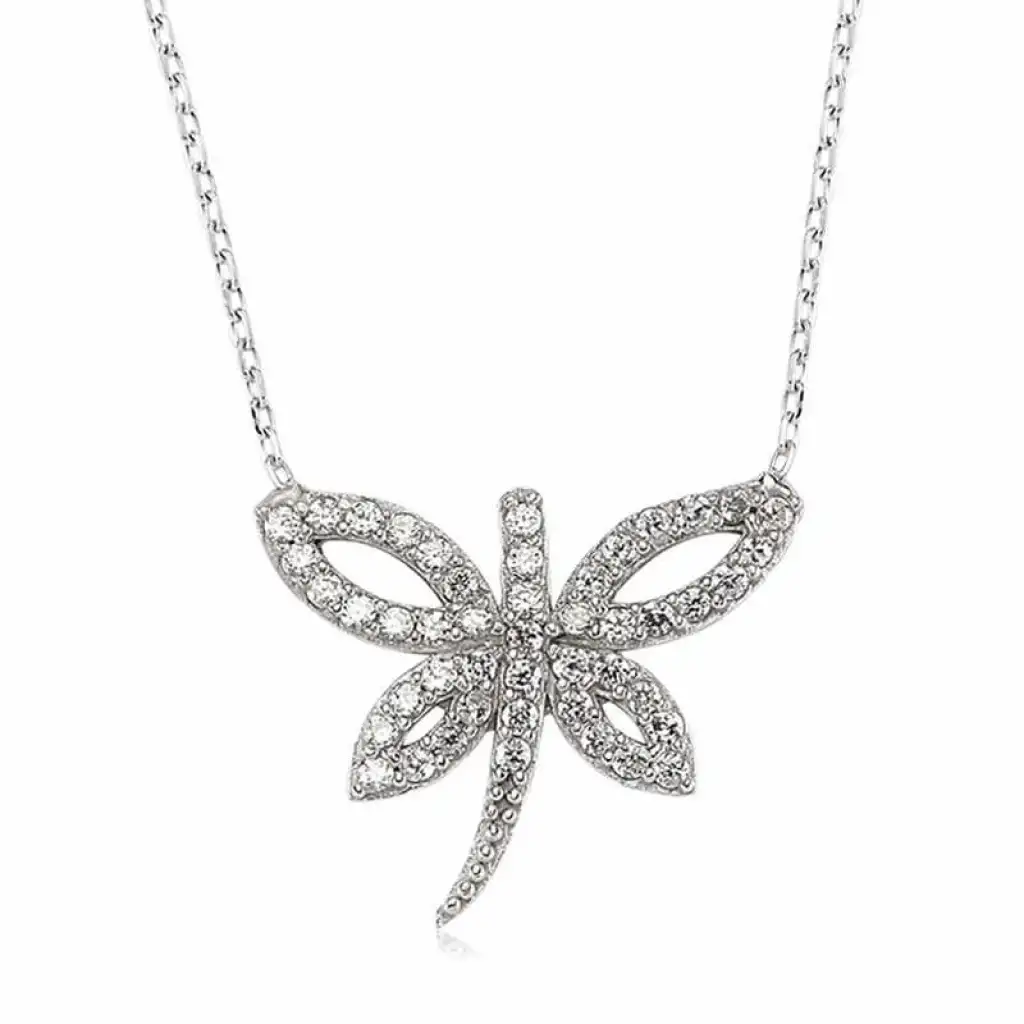Kendinizin ve sevdiklerinizin günlük hayatta rahatlıkla kullanabileceğiniz bir model olan gümüş yusufçuk bayan kolye 925 ayar gümüşten imal edilmiştir. Gümüş üzerine rodyum kaplama yapılmıştır. Rodyum kaplama yapılan gümüş bayan kolye modelleri parlaklığını uzun süre muhafaza eder ve oksitlenmesi gecikir. Kolye üzerinde bulunan beyaz taşlar zirkondur. Gümüş olan zincir boyu ortalama 45 cm'dir. Tüm gümüş bayan kolye modellerinde olduğu gibi bu gümüş yusufçuk bayan kolye modeli de el emeği ile üretilmiştir. Gümüş ve değerli taşlar nedeniyle belirtilen ortalama ürün ağırlığında ± %10 sapma olabilmektedir.