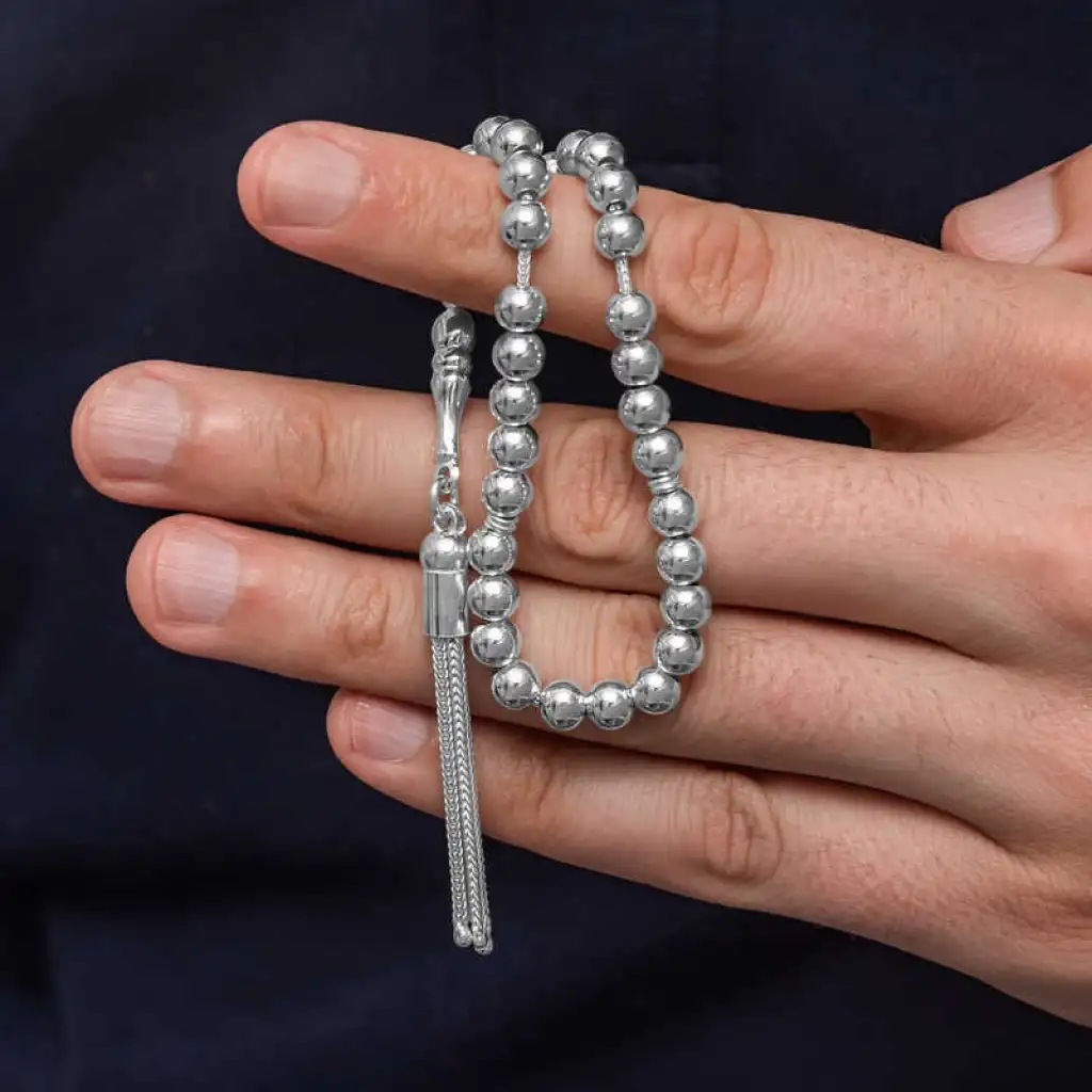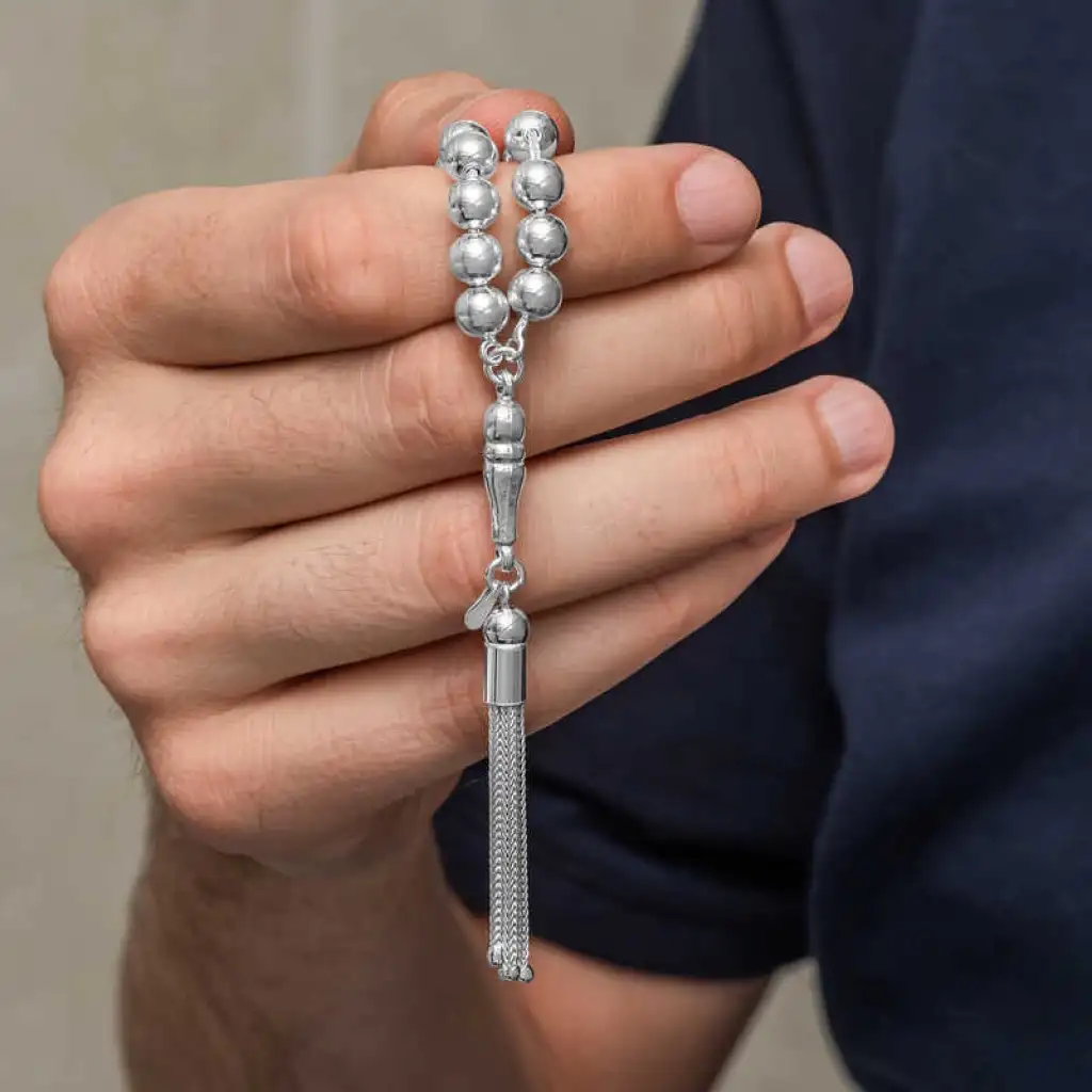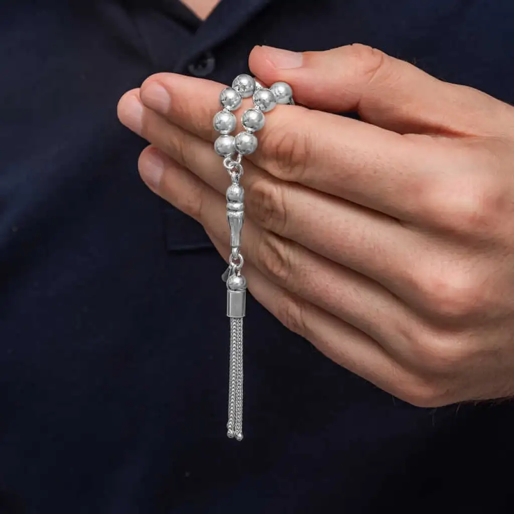 Erkekler için özel olarak tasarlanmış bu şık gümüş tesbih,zarafeti ve geleneksel dokuyu modern bir çizgiyle buluşturuyor.Parlak yuvarlak taneleri ve detaylı işçiliğiyle öne çıkan tesbih,%100 925 ayar saf gümüşten üretilmiştir.Her yaş grubuna hitap eden klasik ve zamansız bir tasarıma sahiptir.Gümüş tesbihi severek kullanabilir;doğum günü,sevgililer günü veya babalar gününde ya da özel günlerde hediye olarak tercih edebilirsiniz.Ürünlerimizin tamamı el emeği ile üretilmiştir.Gümüş ve değerli taşlar nedeniyle belirtilen ortalama ürün ağırlığında ± %10 sapma olabilmektedir.