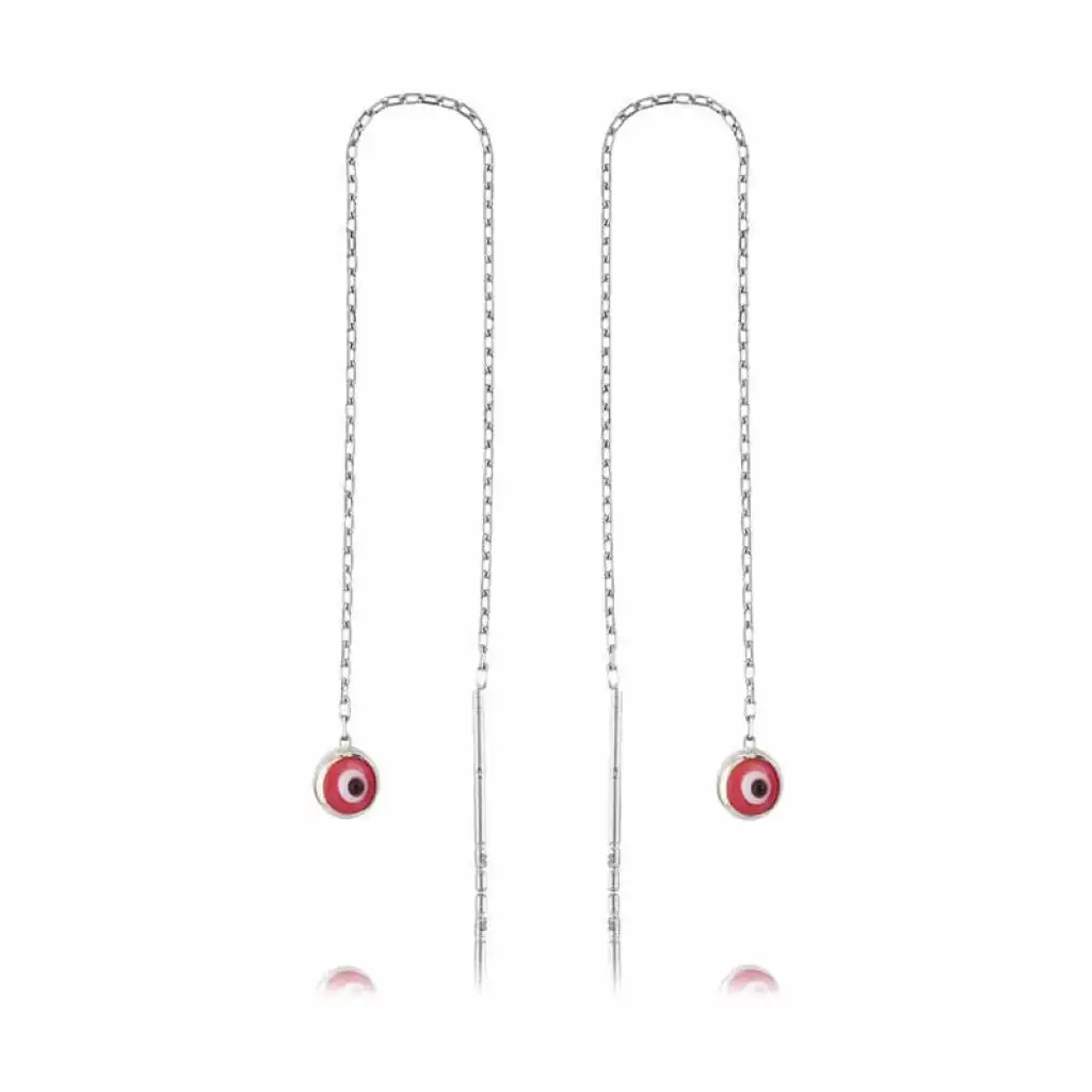 Nazar boncuğunu insanlar uzun yıllardan beri kötü bakıştan korunmak için kullanmışlardır. Kötü bakışların insanlar üzerinde olumsuz etki oluşturmasına karşı bir önlemdir nazar boncuğu… Bu sebeptendir ki insanlar sevdiklerini korumak için nazar boncuğu takmaktadır. Bu nazar küpe de şıklığı ve zarafeti yansıtıyor. Her dönem sevilen ve şıklığından ödün vermeyen bu modeli ; doğum günü hediyesi, sevgililer günü hediyesi veya annelere hediye olarak özel günlerde tercih edebilirsiniz. Zincirli pembe nazar bayan küpe, 925 ayar gümüşten imal edilmiştir. Gümüş küpe üzerine rodyum kaplama yapılmıştır. Rodyum kaplama yapılan gümüş bayan küpeler parlaklığını uzun süre muhafaza eder, oksitlenmesi gecikir. Tüm gümüş bayan küpelerde olduğu gibi bu gümüş zincirli pembe nazar bayan küpe de tamamı el emeği ile üretilmiştir. Gümüş ve değerli taşlar nedeniyle belirtilen ortalama ürün ağırlığında ± %10 sapma olabilmektedir.