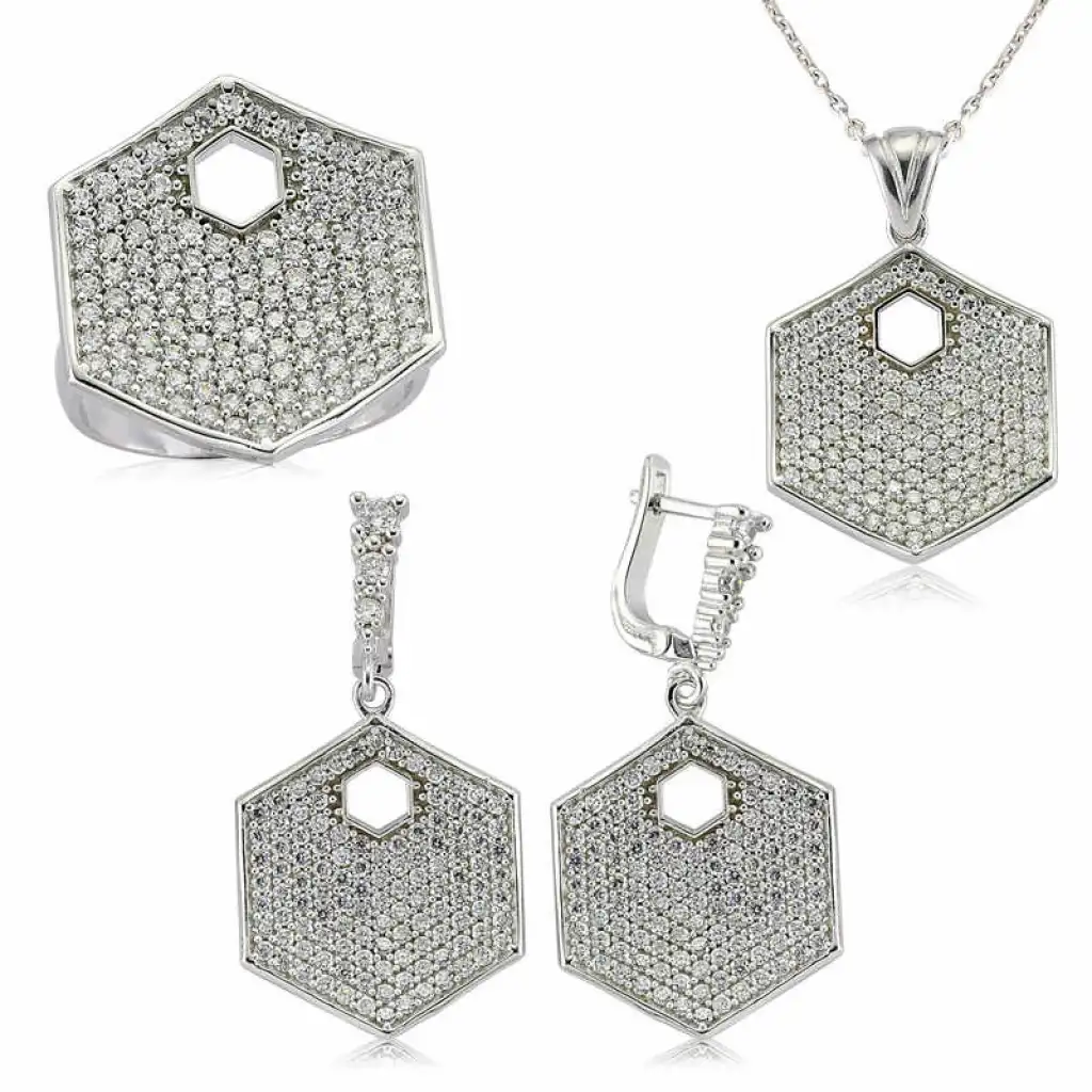 Gümüş Zirkon Taşlı Altıgen Bayan Set