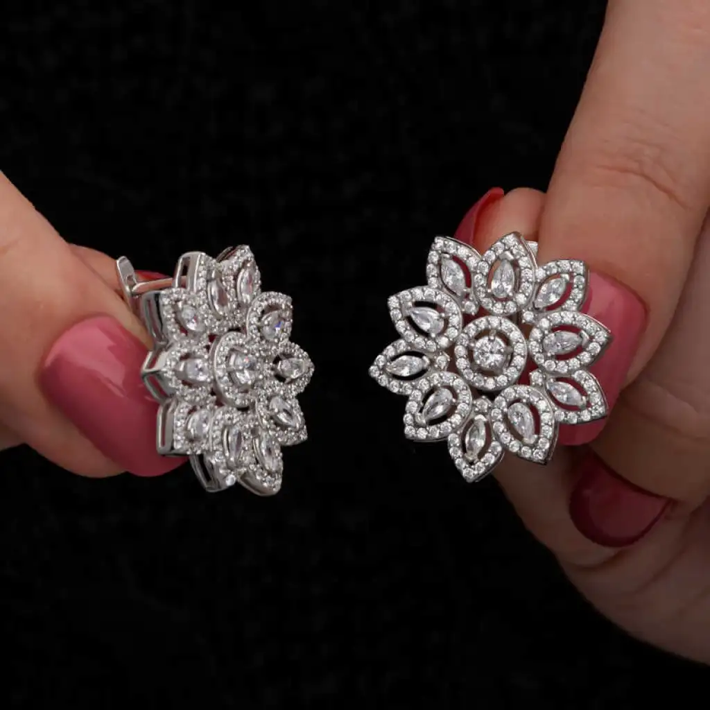 Gümüş Zirkon Taşlı Çiçek Kadın Küpe