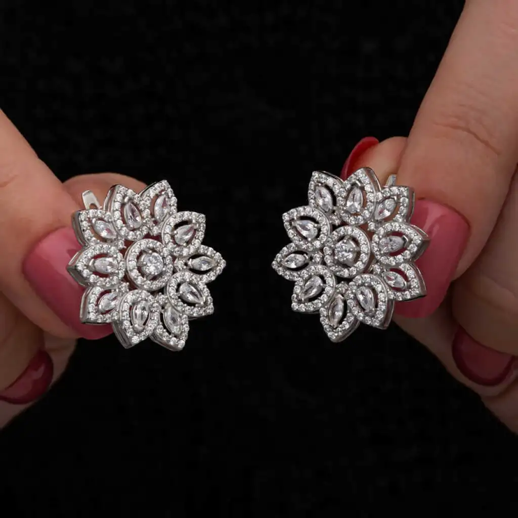 Gümüş Zirkon Taşlı Çiçek Kadın Set