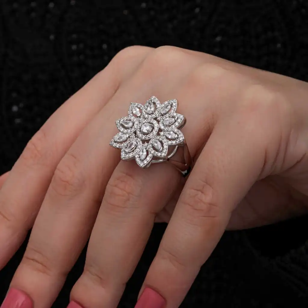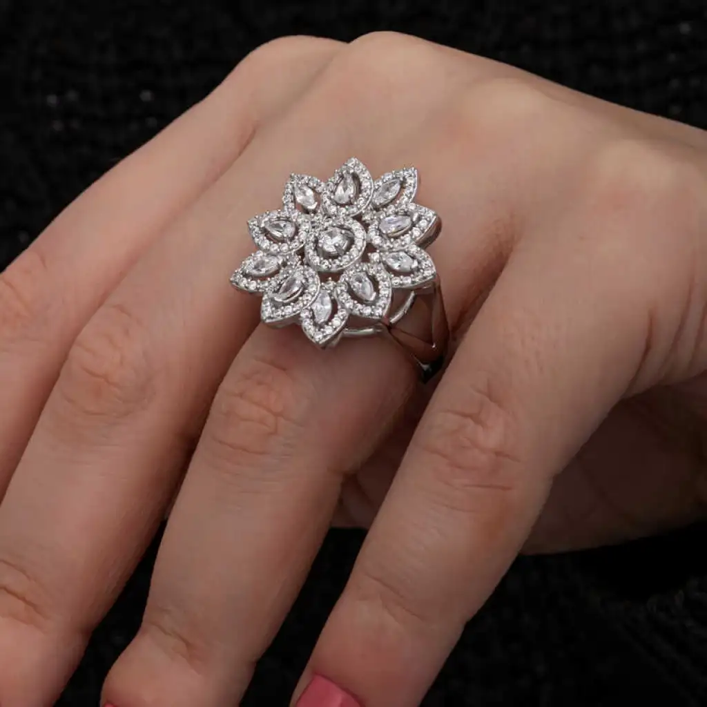 Gümüş Zirkon Taşlı Çiçek Kadın Yüzük