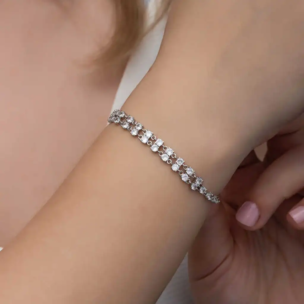 Gümüş Zirkon Taşlı Çift Sıra Kadın Bileklik