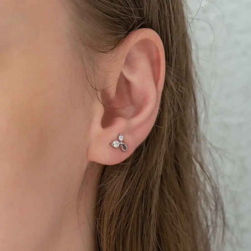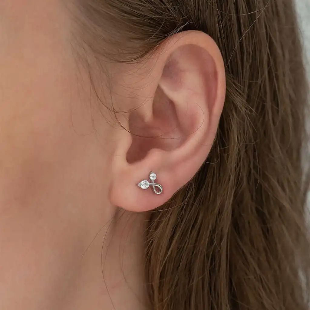 Gümüş Zirkon Taşlı Çivili Bayan Küpe