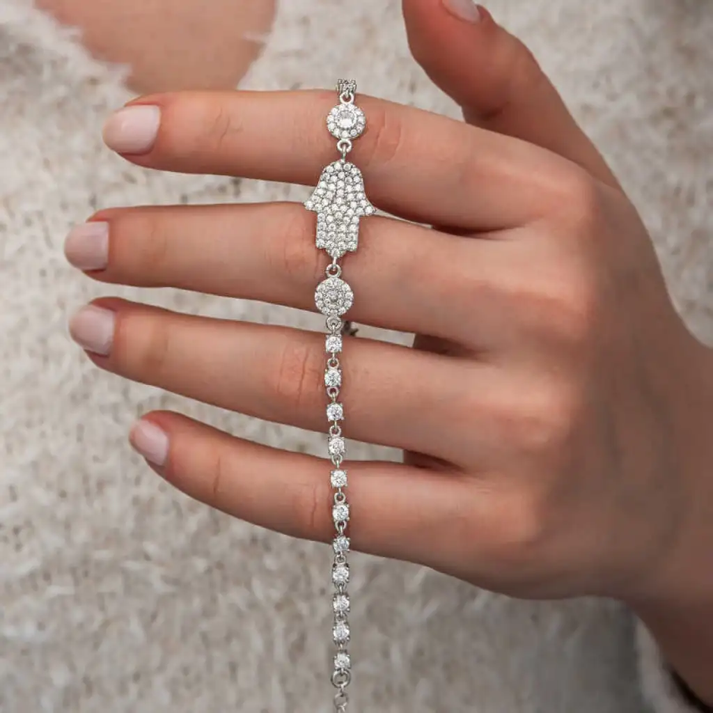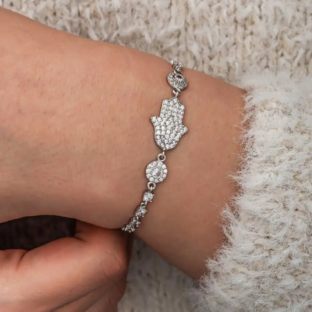 Gümüş Zirkon Taşlı Fatma Ana Eli Kadın Bileklik