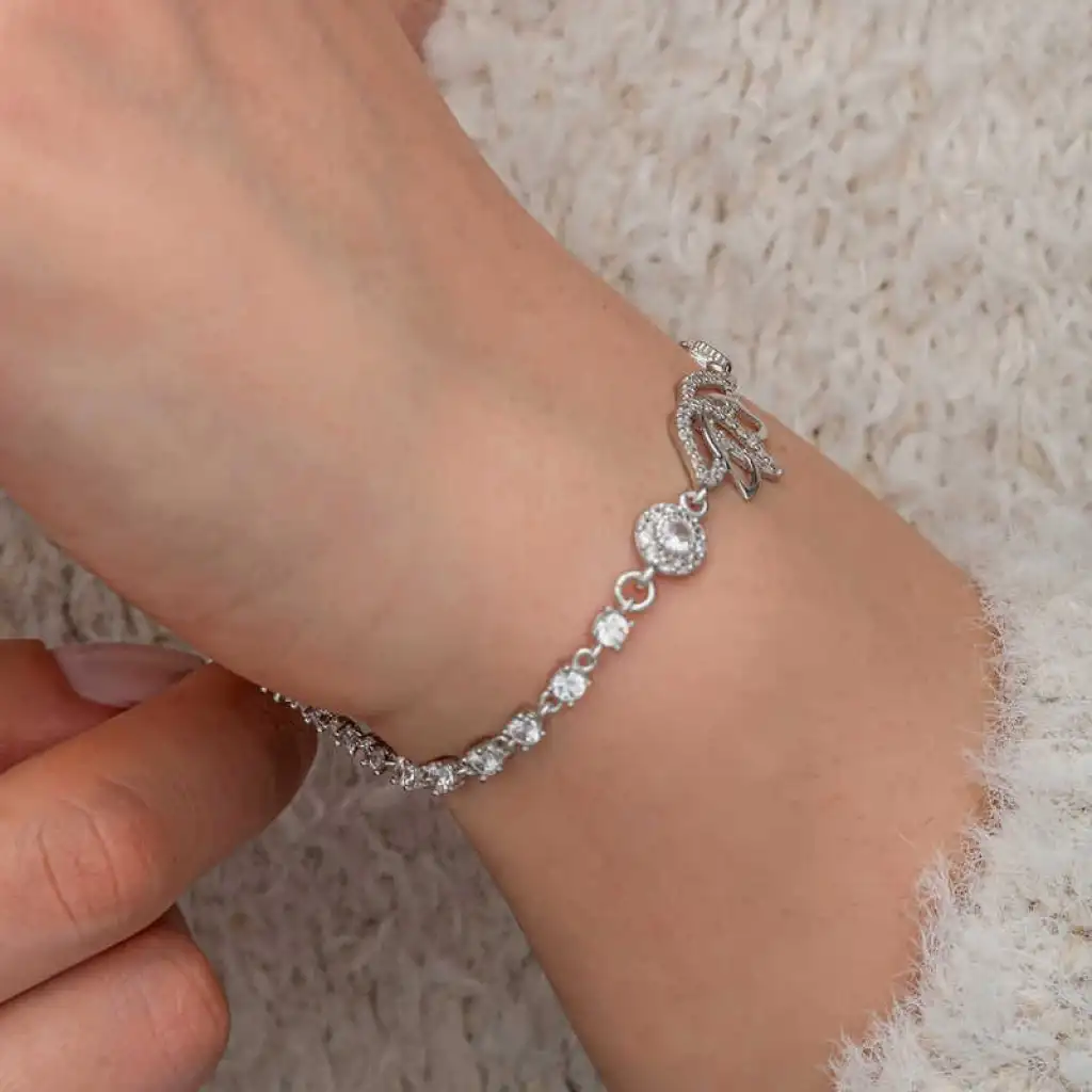 Gümüş Zirkon Taşlı Lotus Kadın Bileklik