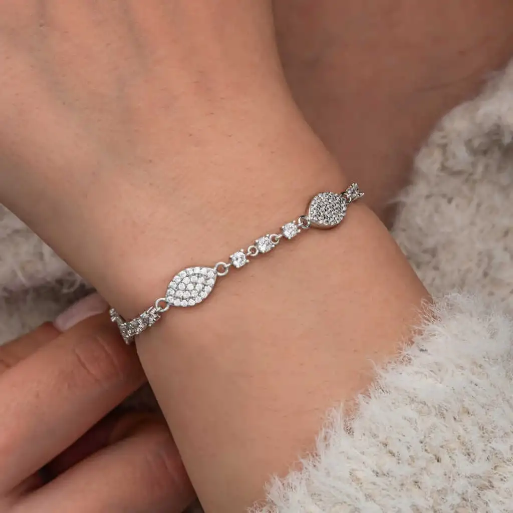 Gümüş Zirkon Taşlı Mekik Kadın Bileklik