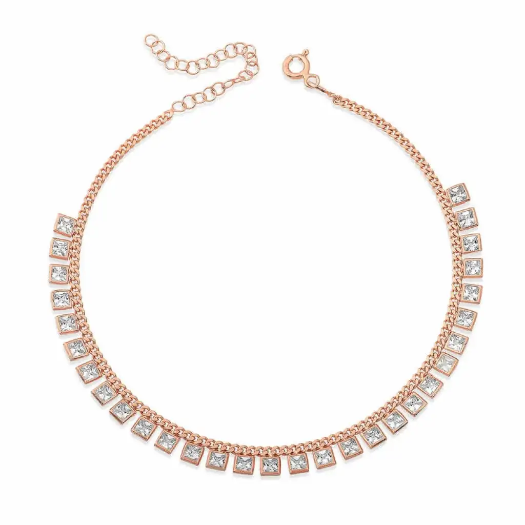 Gurmet Zincirli Kare Zirkon Taşlı Rose Halhal