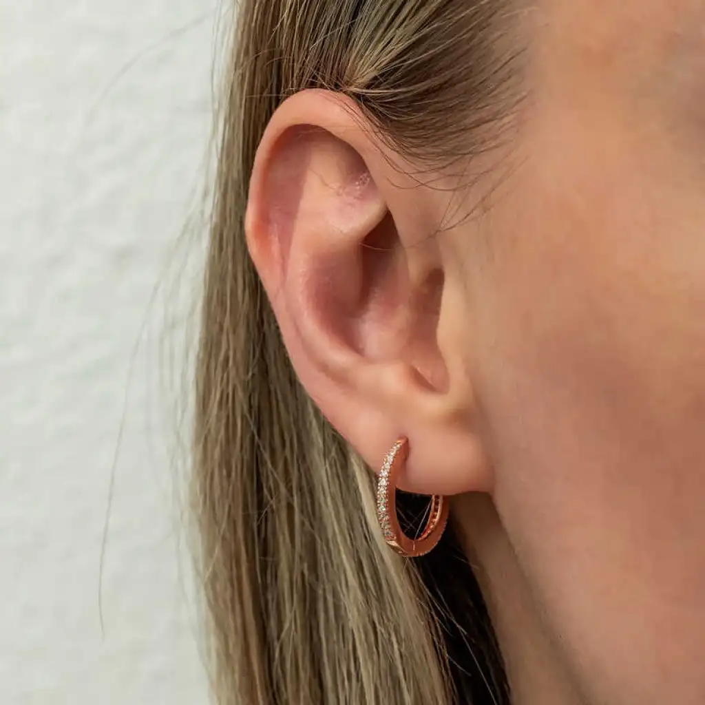 Gümüş Zirkon Taşlı Rose Oval Küpe