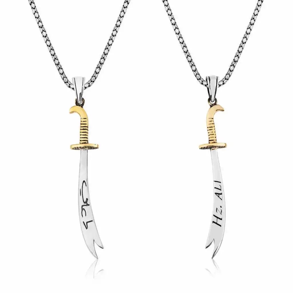 Gümüş Zülfikar Kılıcı Hz. Ali Yazılı Erkek Kolye